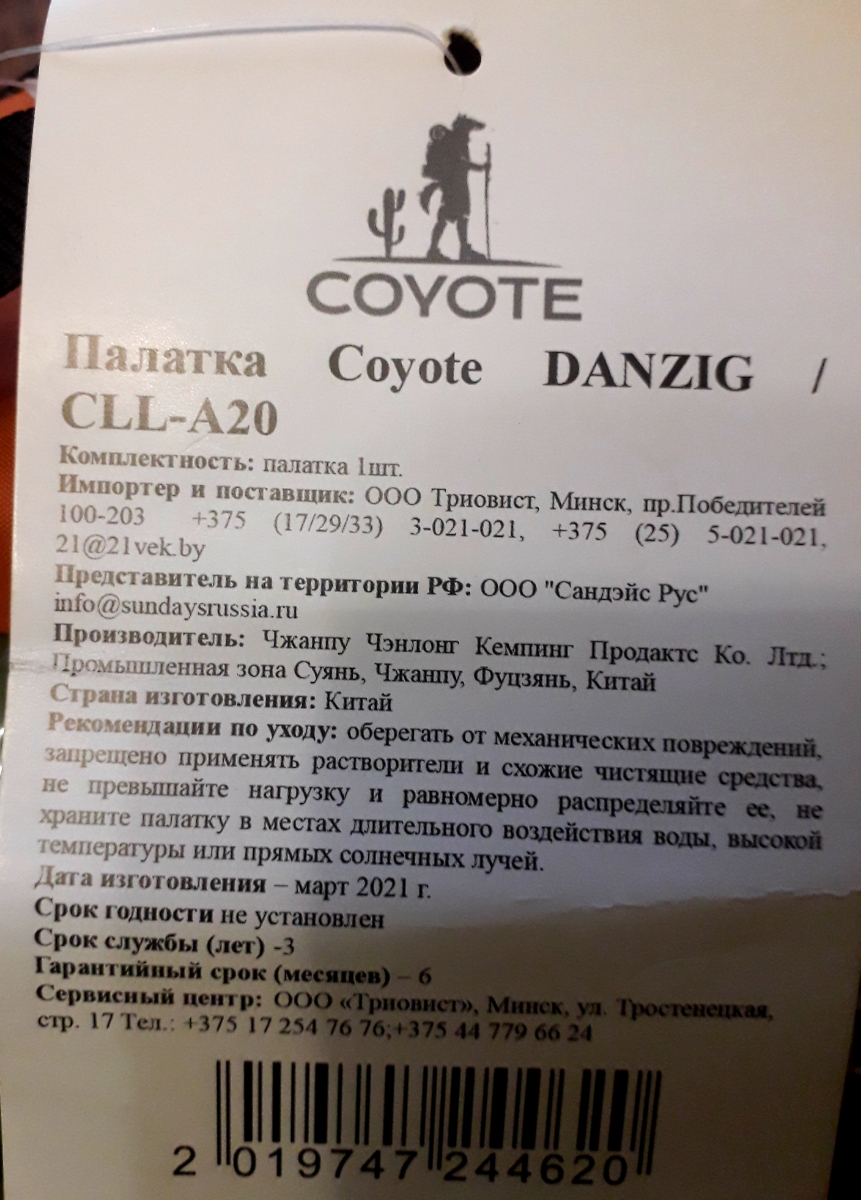 Палатка Coyote Danzig / CLL-A20 подходит для комфортного размещения 3 человек. Благодаря малому весу палатка подойдёт любителям пеших походов. Конструкция: обтекаемая полусфера. Простая и логичная конструкция позволяет быстро установить палатку даже нович