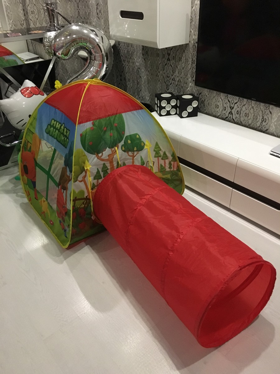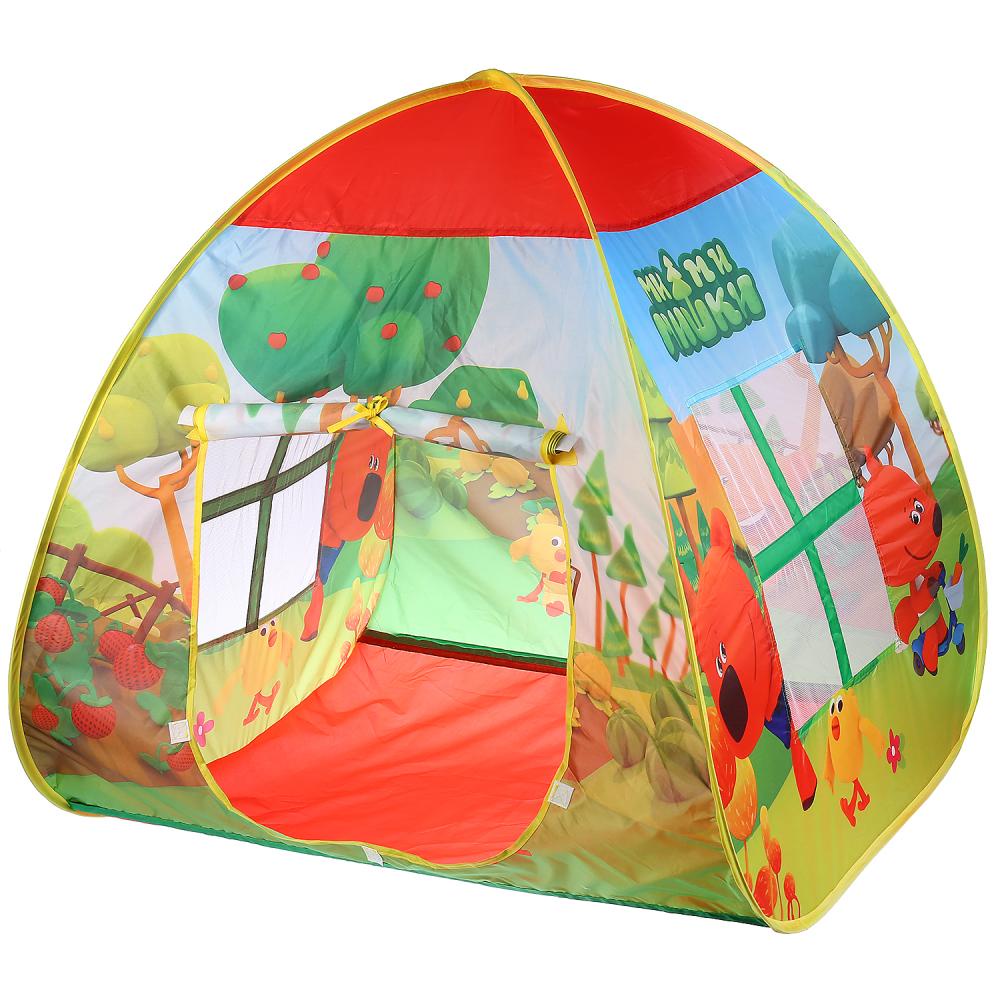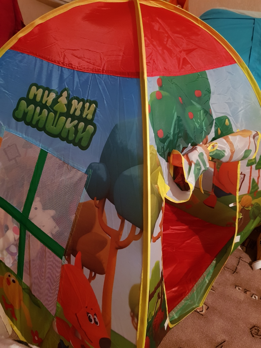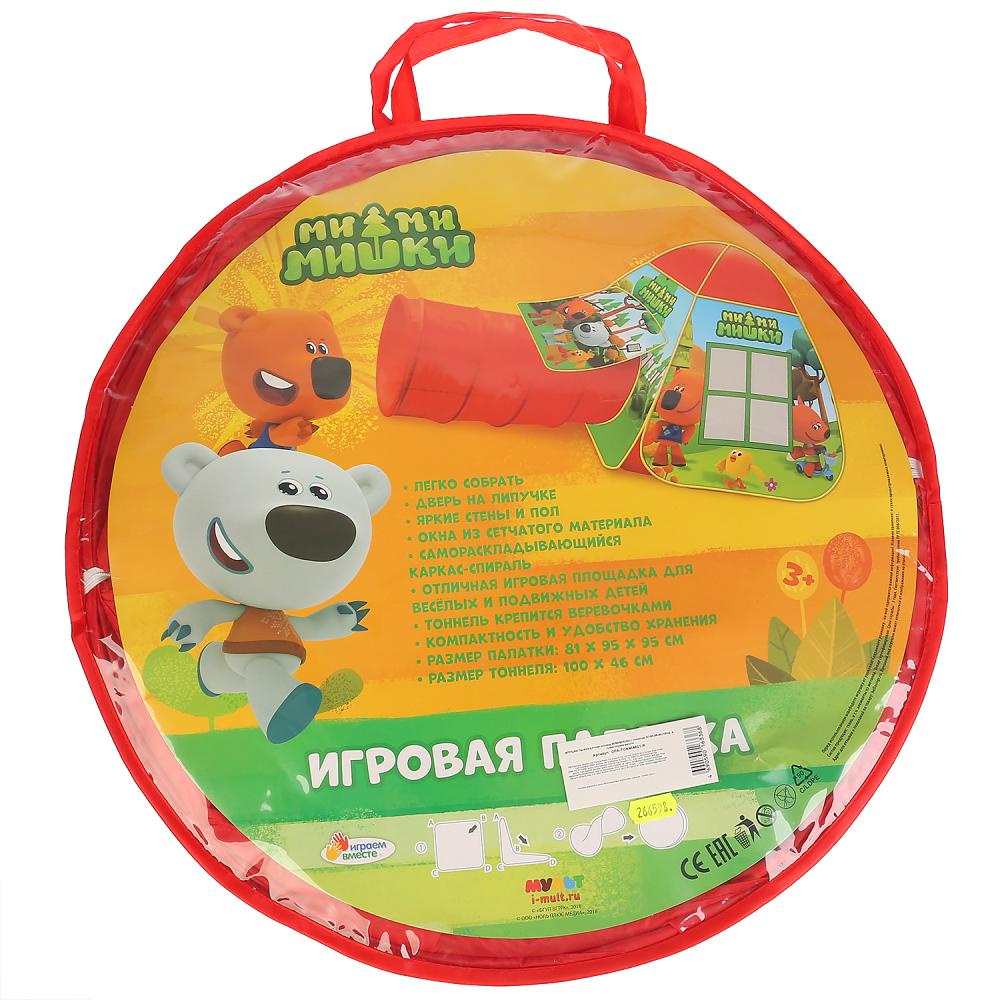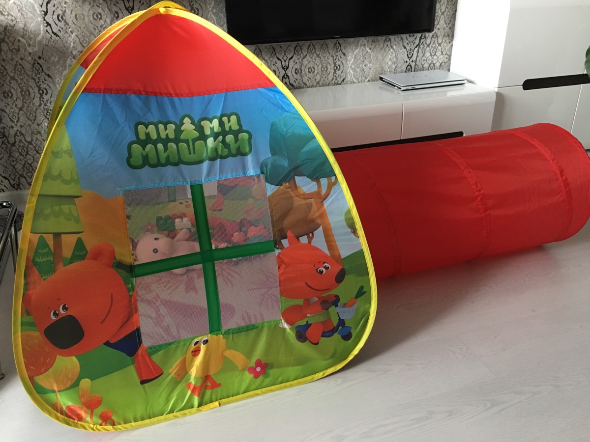 Игры с детской палаткой «Ми-ми-мишки» ТМ «Играем вместе» – любимое развлечение каждого малыша! Она украшена изображениями персонажей одноимённого мультфильма и сочетает в себе несколько функций:- в ней можно устроить уютный домик, используя только основну