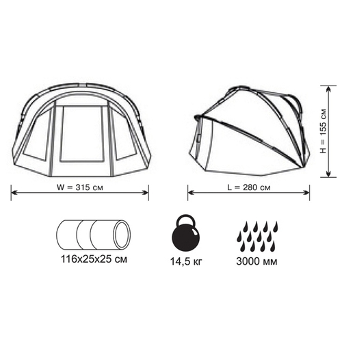 Размеры внешней палатки (ДхШхВ)315x280x155 см