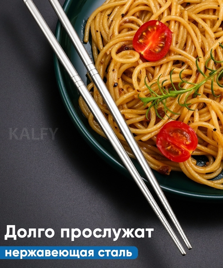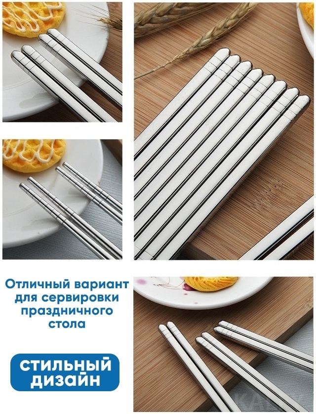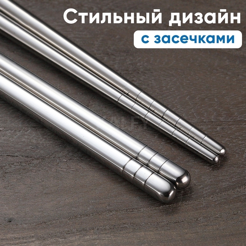 Многоразовые палочки для блюд восточной кухни – незаменимый атрибут для любителей суши, роллов, лапши wok и многих других азиатских деликатесов. Стильные китайские палочки изготовлены из нержавеющей стали для пищевых целей.Благодаря специальным насечкам в