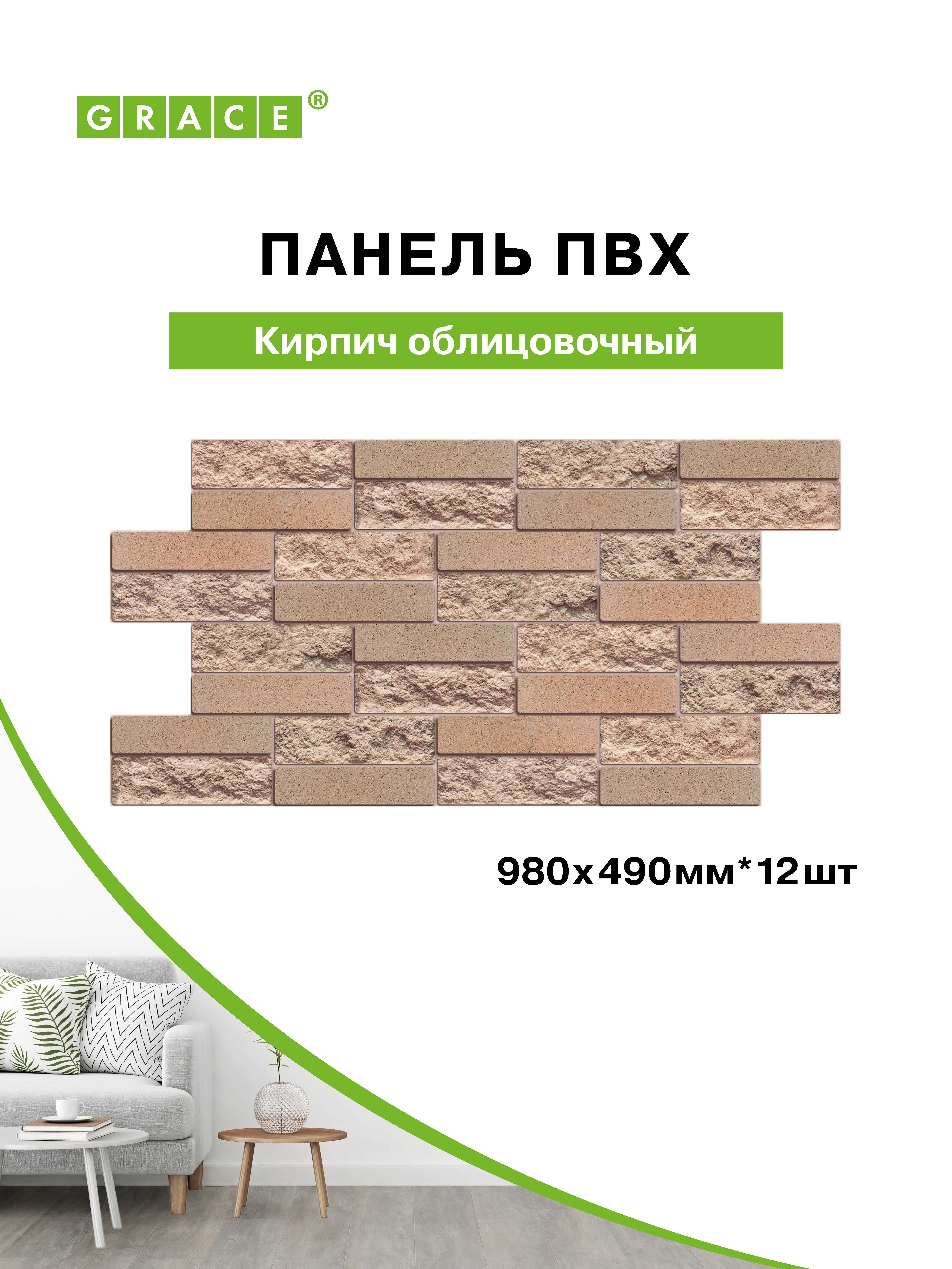 Комплектация:Панели ПВХ / Панели ПВХ для стен Кирпич облицовочный 980*490мм, 12шт.