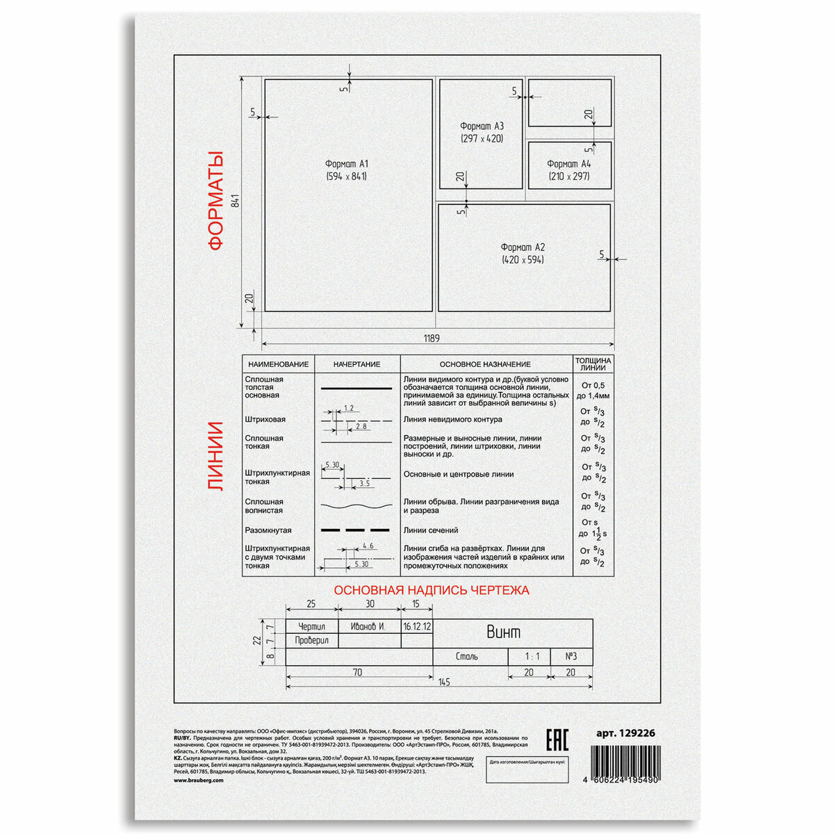 Бумага для черчения BRAUBERG содержит набор листов ватмана для выполнения чертежно-графических работ карандашами, тушью и чернилами.Внутренний блок содержит 10 листов производства ГОЗНАК КБФ плотностью 200 г/м2. Обложка выполнена из импортного мелованного