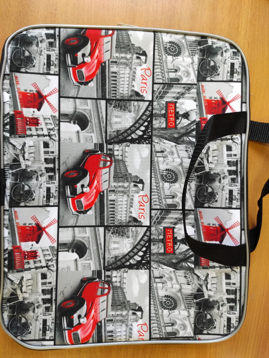 Папка для документов под формат А4 с ярким,красочным принтом на передней части. Закрывается на молнию. Полностью выполнена,включая внутреннюю часть, из прочного водонепроницаемого полиэстра 600Д. Внутри имеется перегородка-отделение.