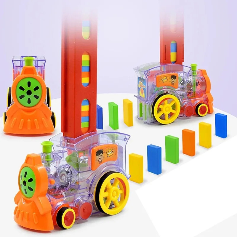 Поезд Домино - это увлекательная детская игрушка, которая сразу привлекает внимание ребёнка. Привлекательность данной детской игрушки, заключается в том что, кроме звуковых и световых эффектов, паровоз при движении расставляет за собой цветные косточки до