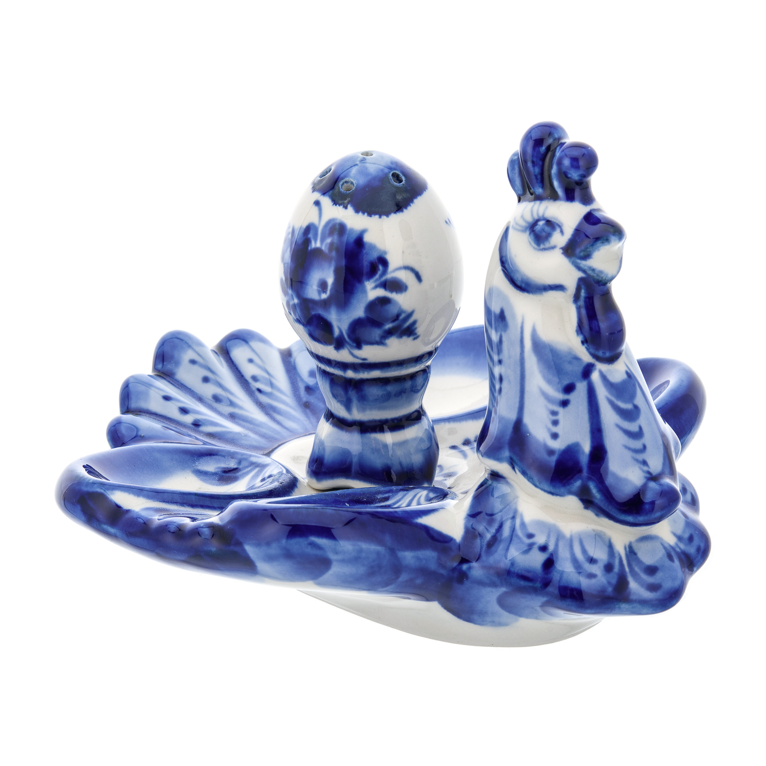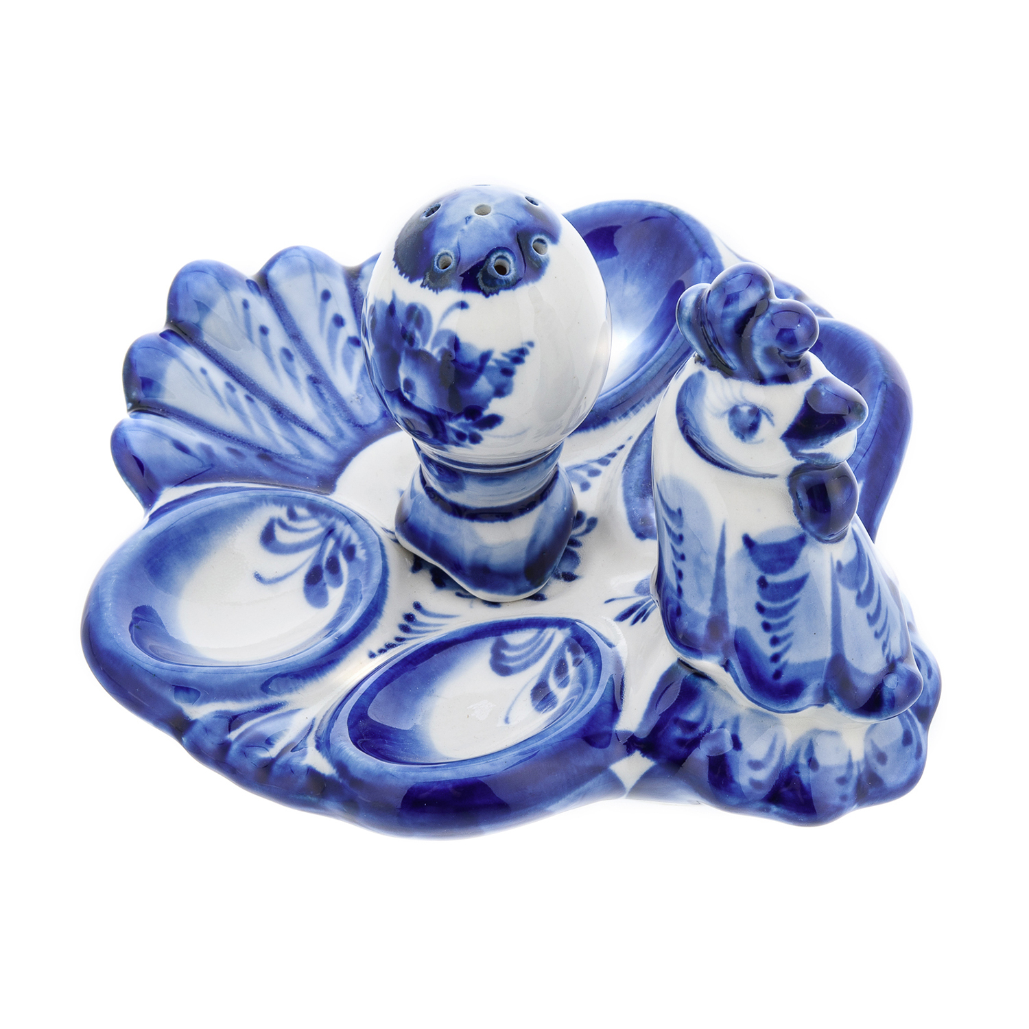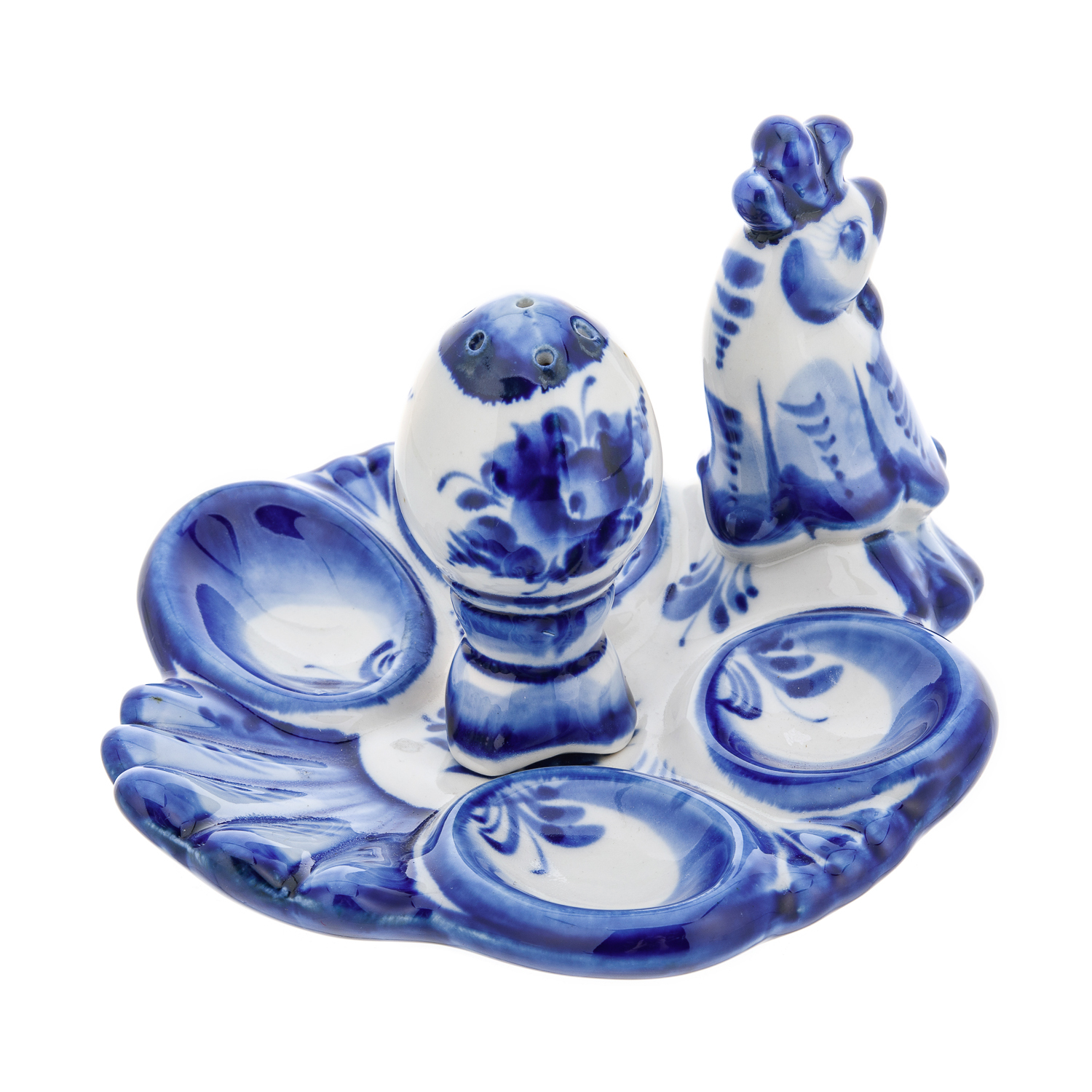 Пасхальница на 4 яйца «Курочка» с солонкой. Гжель.Высота: 9см, диаметр: 20см. В центре пасхальницы - миниатюрная солонка с крышечкой. Работа гжельского мастера - маленький шедевр для интерьера. Он украсит кухню или гостиную и будет красивым элементом деко