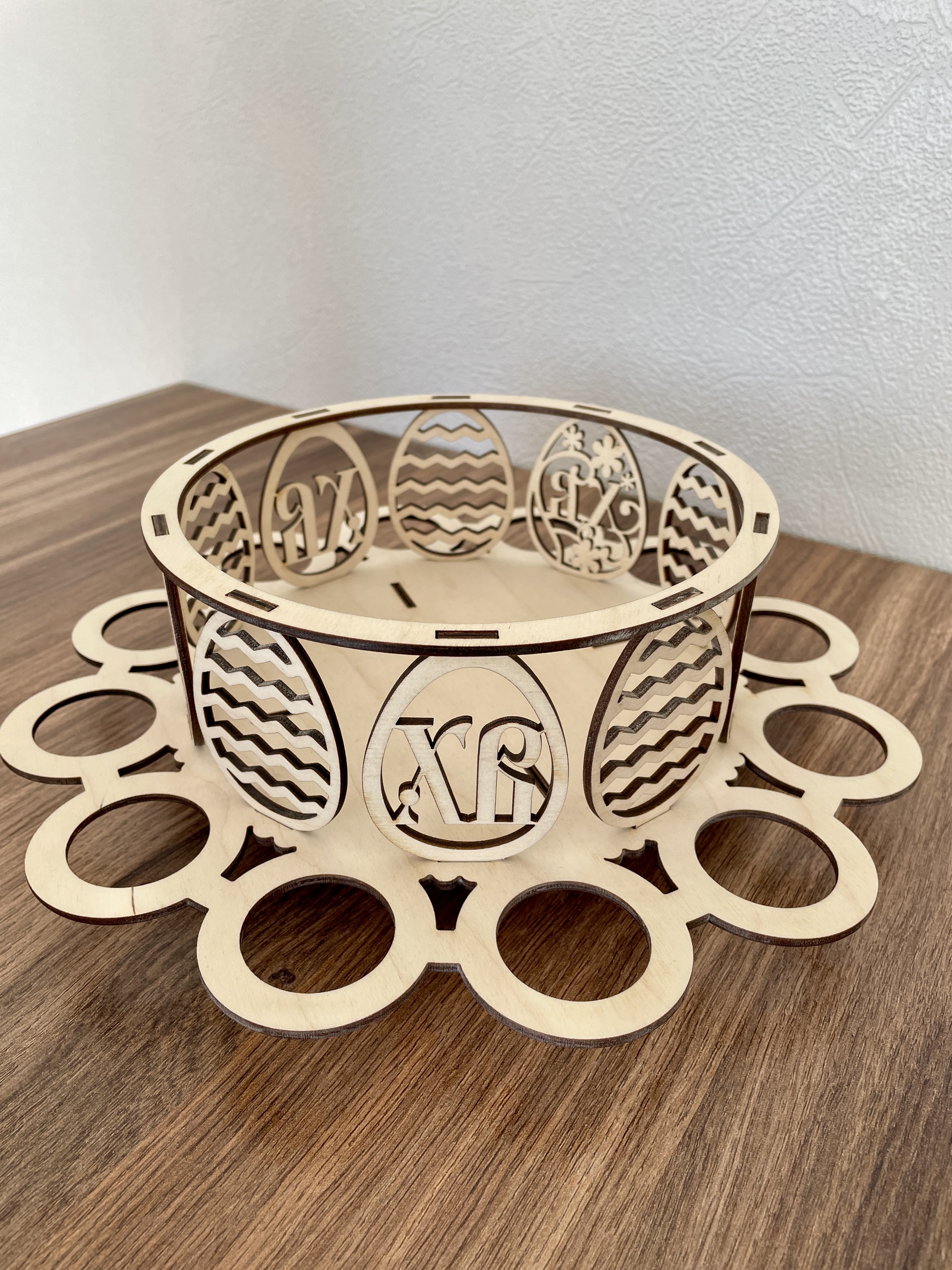 Пасхальница деревянная на 12 яиц будет прекрасным украшением при сервировке праздничного пасхального обеда.Размер - диаметр 29 см.
