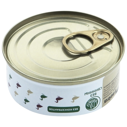 Составмясо утки, мясо курицы, вода, растительное масло, печень куриная, молочный белок, кукурузный крахмал, картофельный крахмал, соль, специи