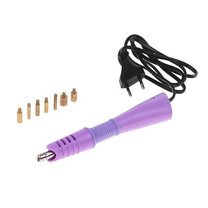 Термоаппликатор для страз с 7-ю металлическими насадками разного размера - приспособление, которое используется для крепления декоративных элементов посредством нагрева и расплавления клеевого слоя страз. В комплекте: пакетик со стразами (пробными), подст