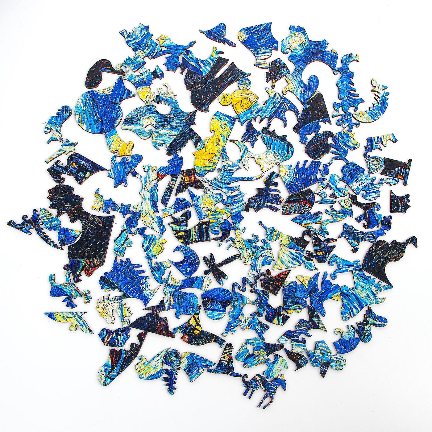 Пазл фигурный. Винсет ван Гог «Звёздная ночь» не останется без вашего внимания!Яркие краски, необычная иллюстрация, экологичный материал. И это еще не всё! Вы только приглядитесь: каждый элемент - это отдельная фигурка со своей историей!В данной серии пре