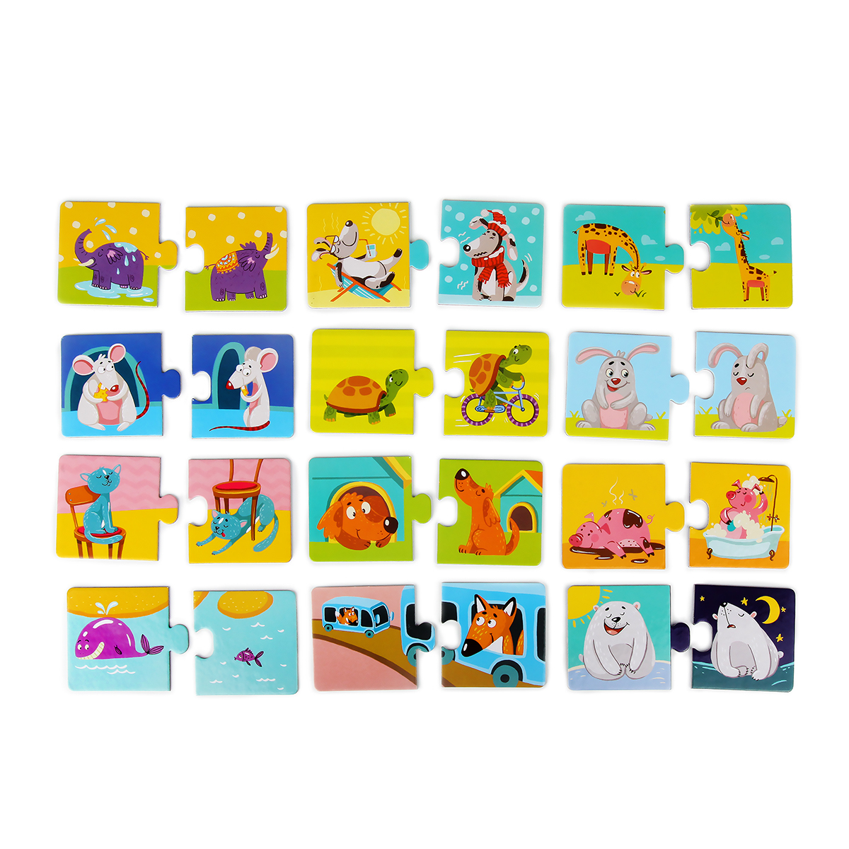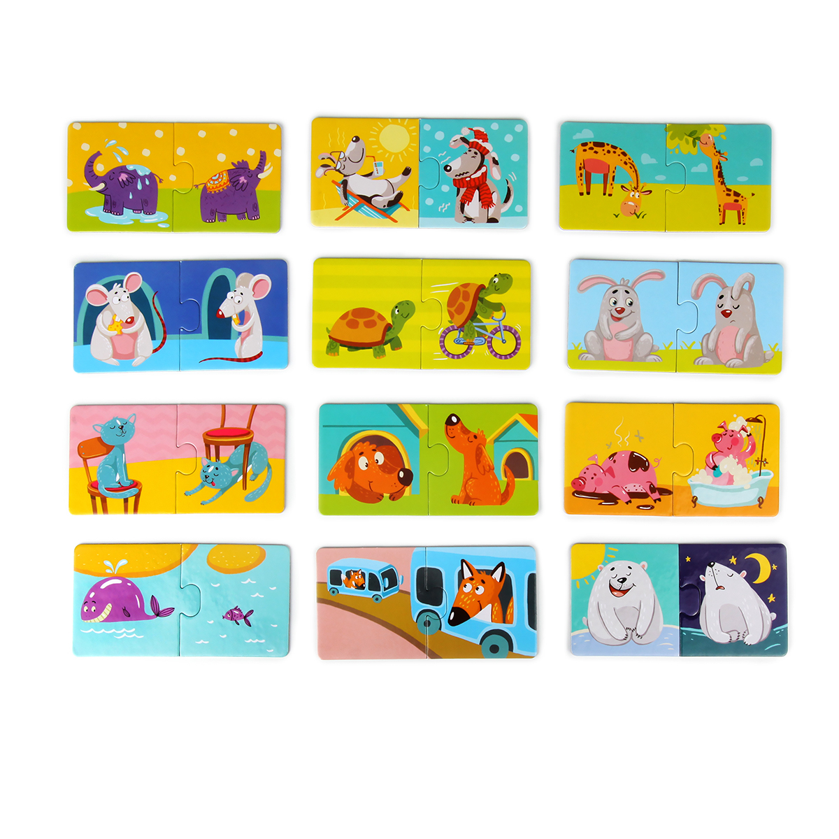 Одной из самых первых логических игр малыша могут стать пазлы-парочки. Чтобы их собрать следует найти и соединить между собой лишь два элемента. Для маленьких детей это довольно сложное, но очень увлекательное занятие.Пазл парочки «Противоположности» сост