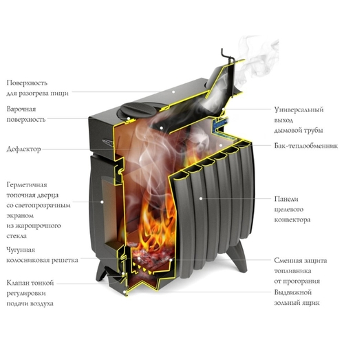 Дополнительная информациящелевой конвектор; минимальная высота дымохода 5 м