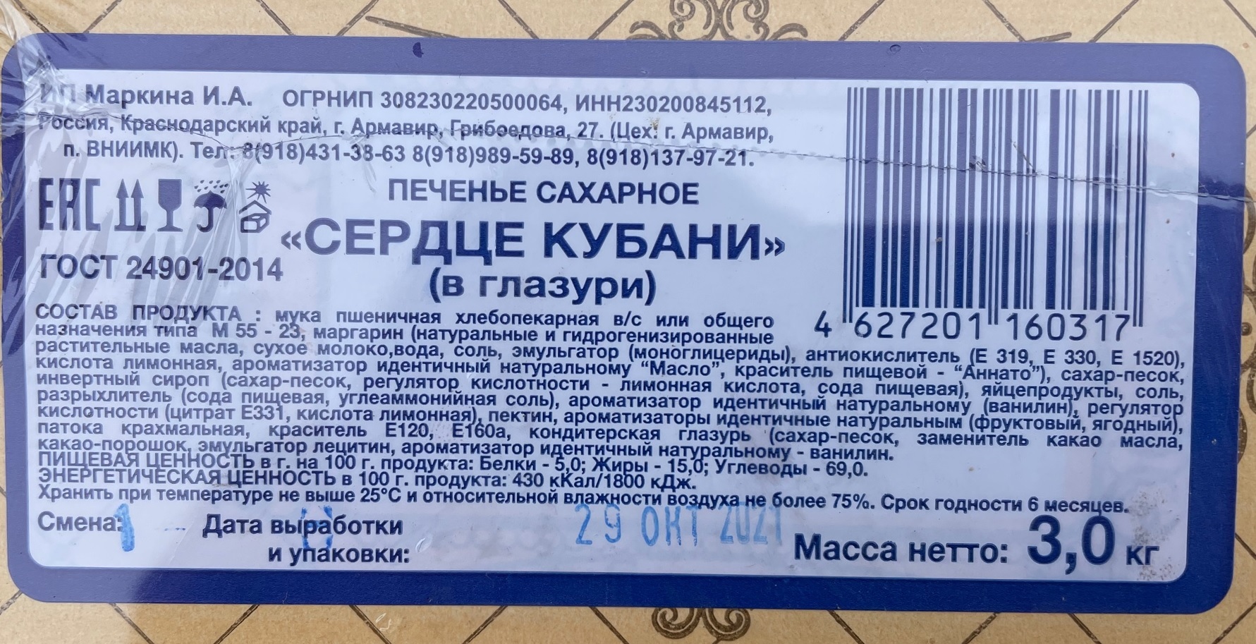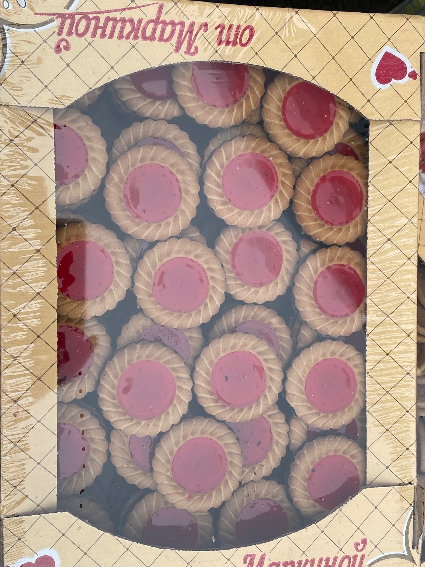 Вкусное печенье с фруктовым мармеладом и глазурьюУсловия хранения:хранить при температуре не выше 25 градусов и относительной влажности воздуха не более 75%Состав:Муха пшеничная хлебопекарная а/с или общего назначения типа М55 - 23, маргарин (натуральные