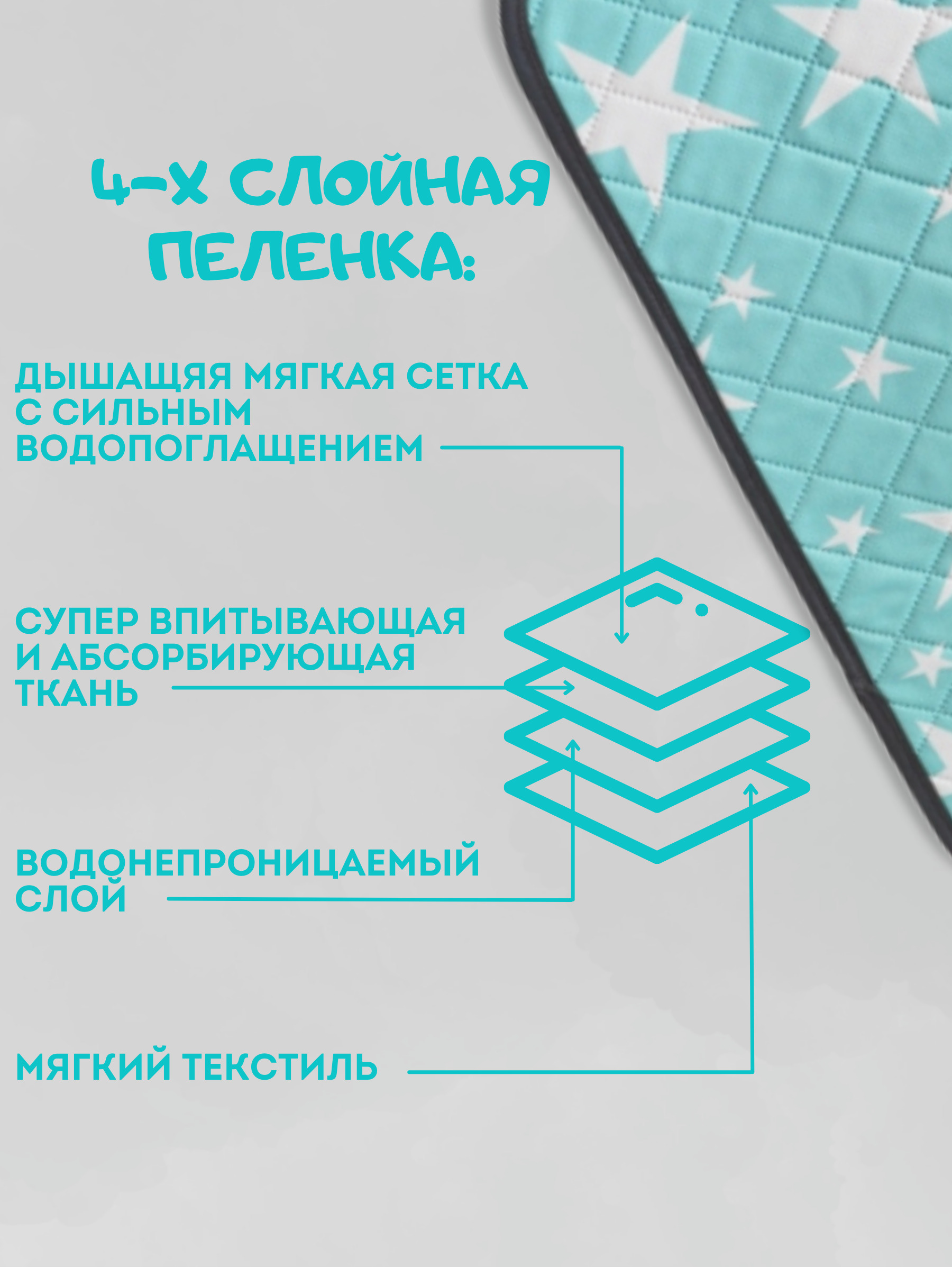 Многоразовая пеленка предназначена в качестве подстилки для домашних животных и для домашних туалетов. Пеленка изготовлена из высокотехнологичной абсорбирующей ткани с впитывающей мембраной, дышащим верхним и непромокаемым нижним слоем. Первый слой изгото