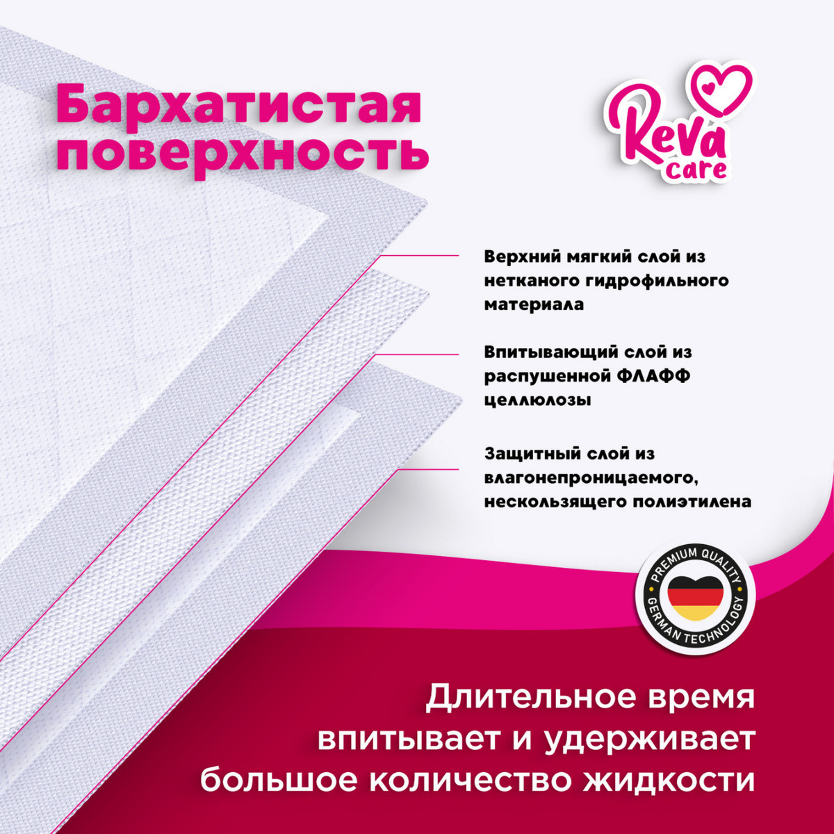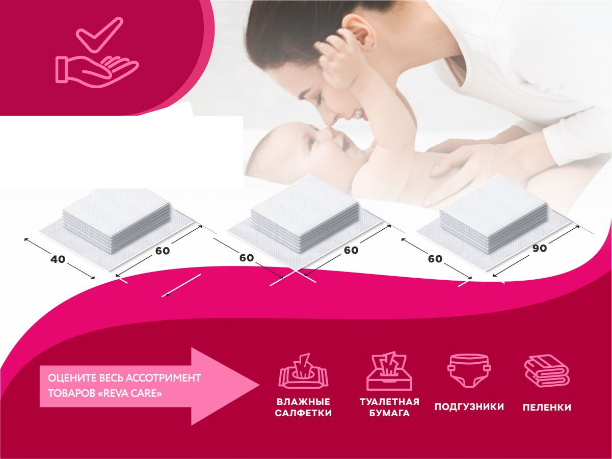Пеленки одноразовые Reva Care - пеленки высокого качества, изготовленные по европейским стандартам. Детские впитывающие одноразовые пеленки Reva Care выполнены из высококачественных гипоаллергенных материалов, без отдушек и ароматизаторов. Абсолютно безоп