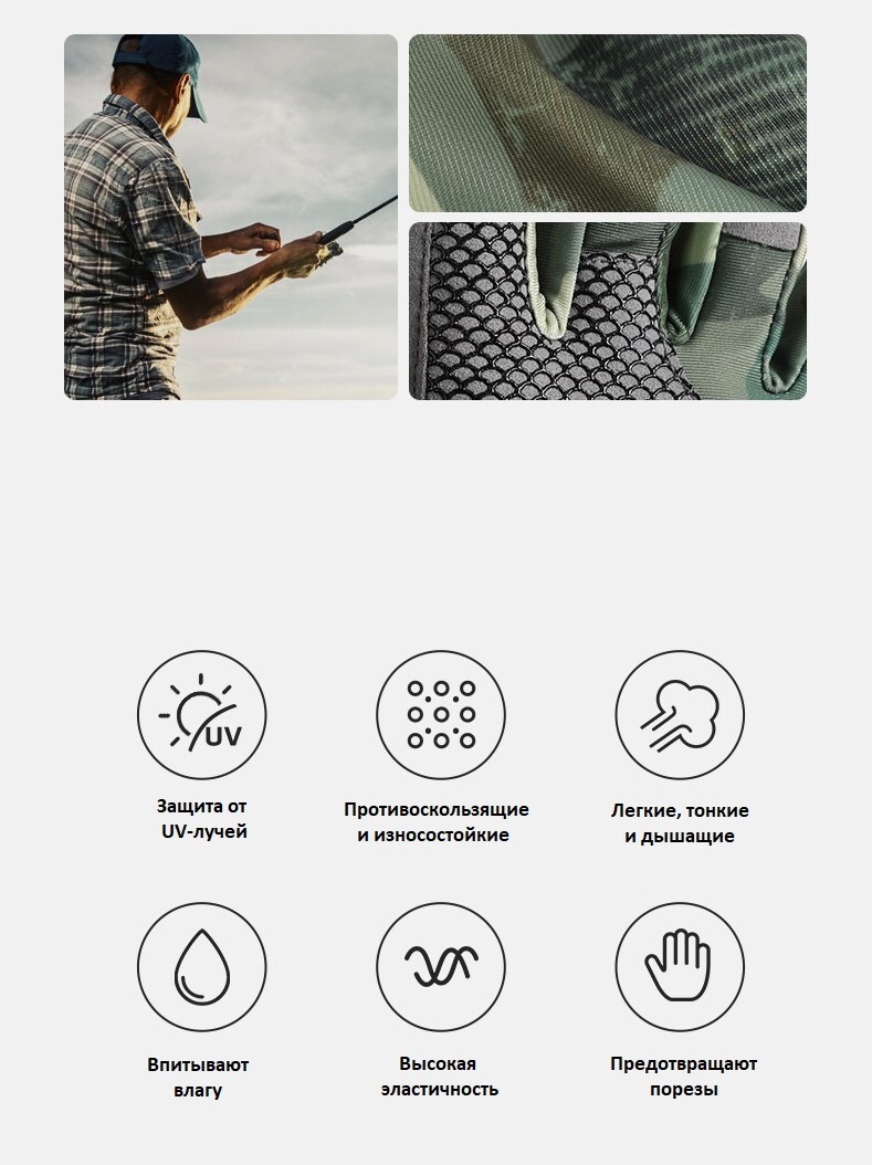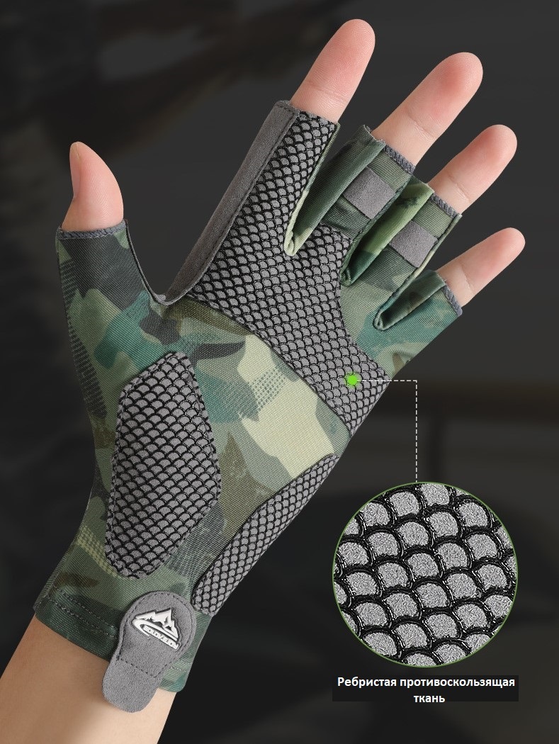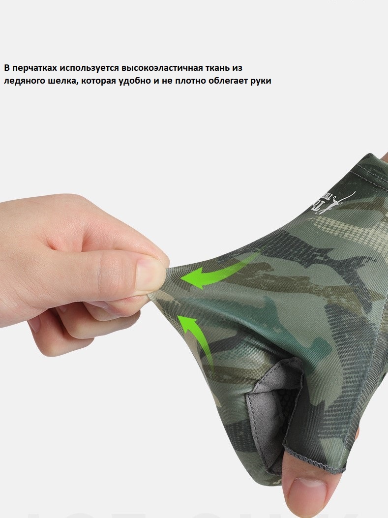 Перчатки рыболовные изготовлены из высококачественного материала - ледяного шелка. Основными преимуществами материала перчатки с открытыми пальцами являются: высокая эластичность и поглащение влаги. Материал перчатки без пальцев мужские будет защищать ваш
