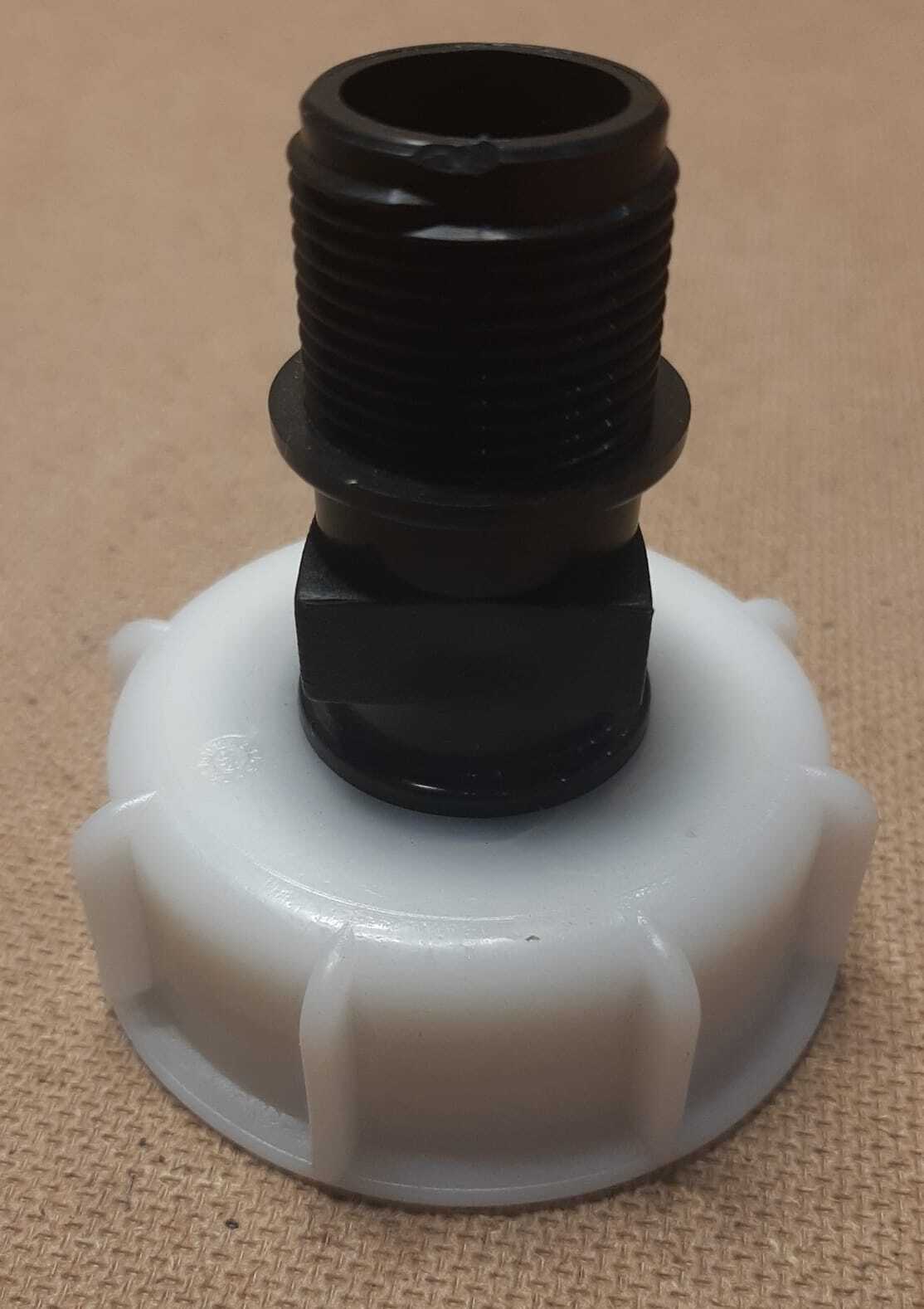 Переход с кубовой бочки на резьбу 3/4 , упорная резьба 60 мм, крупная резьба . Материал пластмасса
