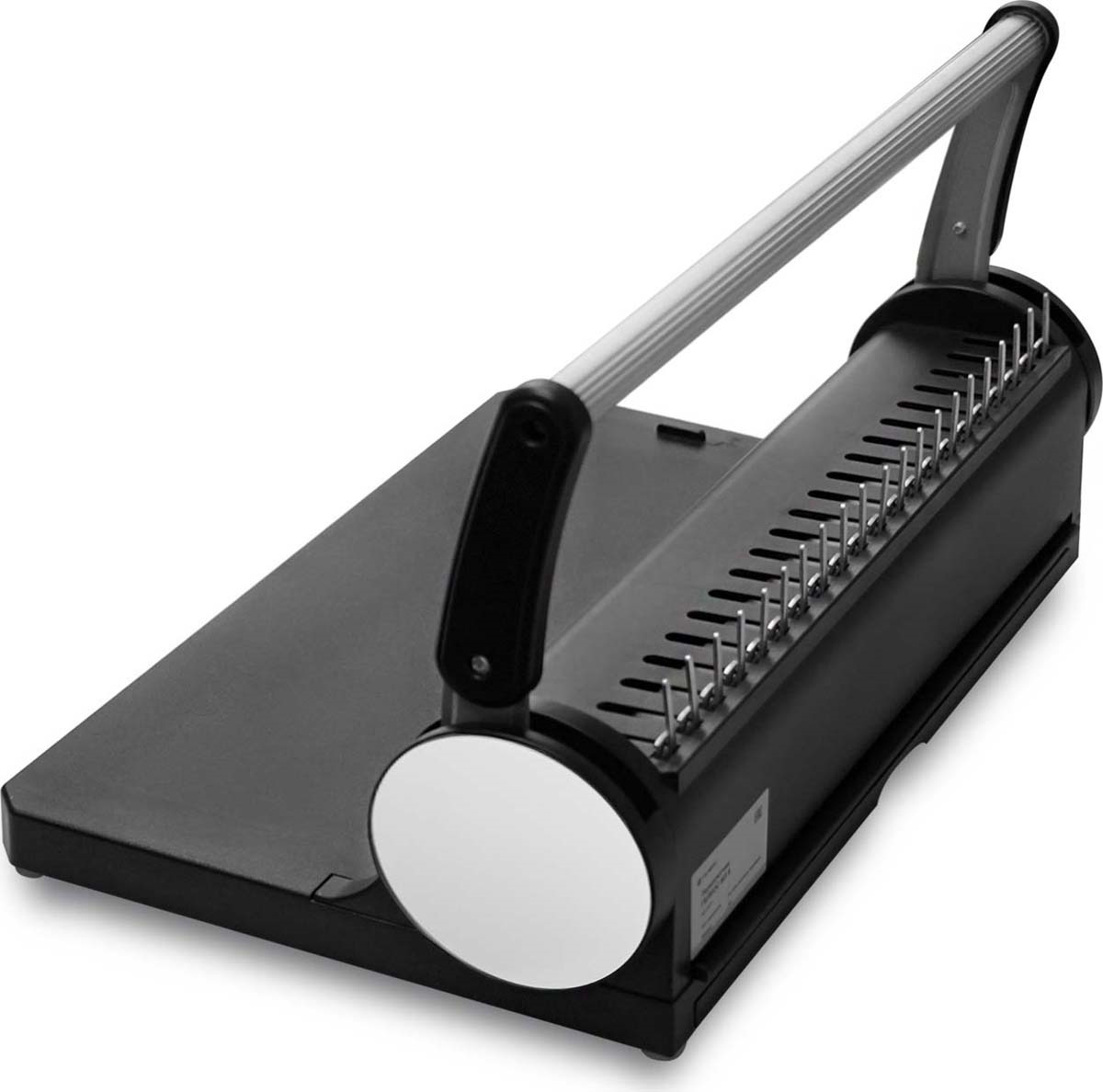 Базовый переплетчик на пластиковую пружину. Подходит для использования в малом офисе и дома. Дает возможность сделать практичный и экономичный переплет на пластиковую пружину диаметром до 19 мм, это блок объемом в 170 листов. Такой вид переплета позволяе