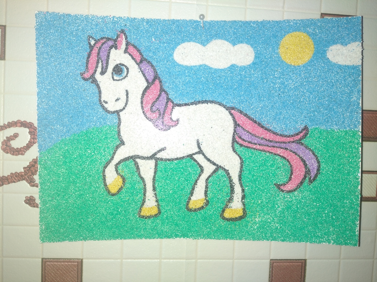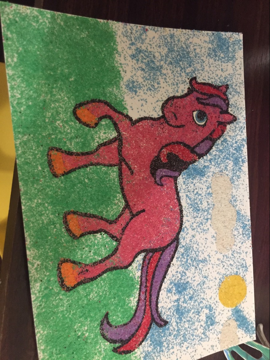 Песочная картина "Лошадка" - это занимательная раскраска цветным песком для детей. Готовые песочные картины будут прекрасным украшением детских комнат или подарком для друзей. В набор входят: трехслойная картонная основа с вырезанным лазером трафаретом;