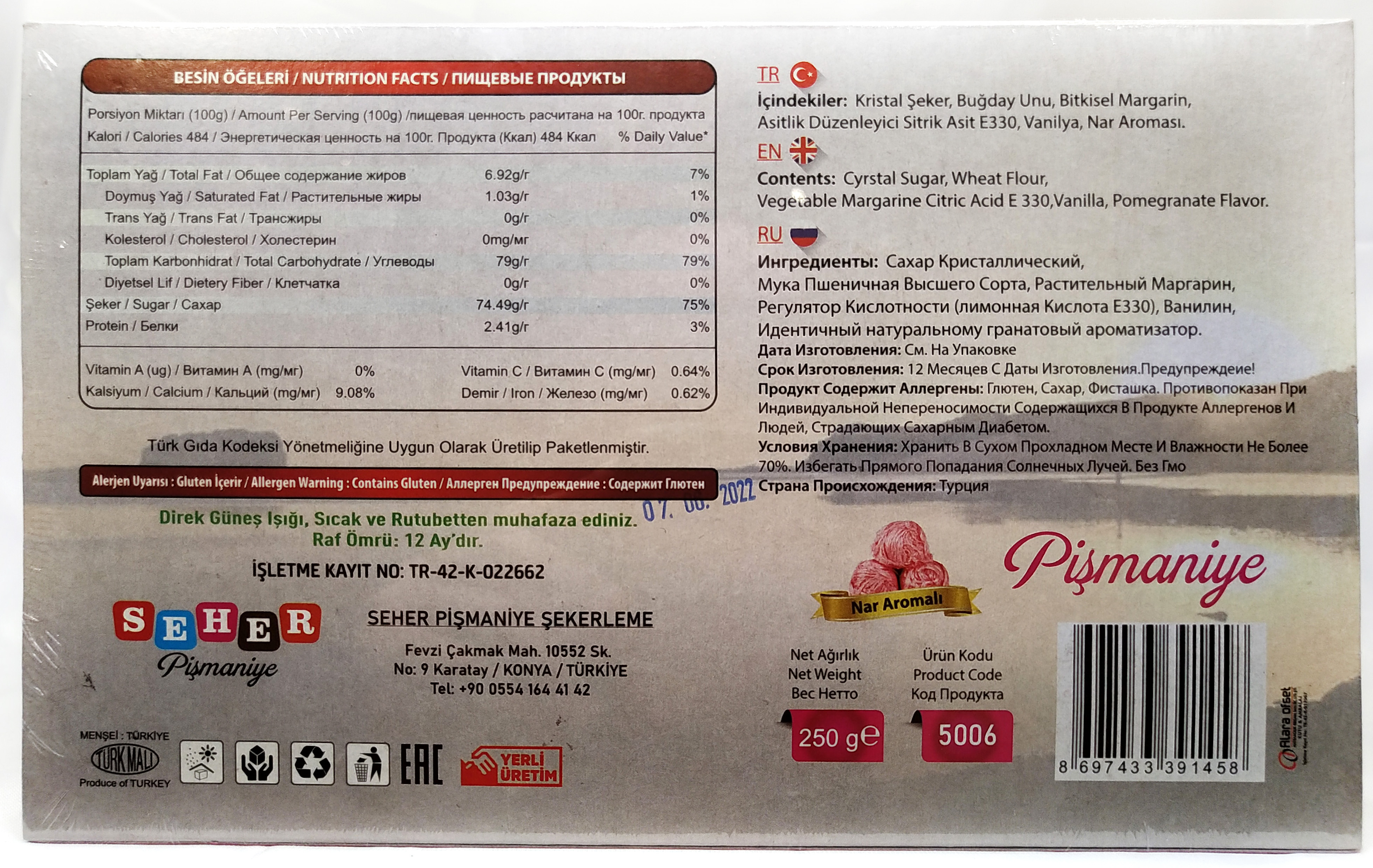 Условия хранения:Хранить в сухом, прохладном месте. Избегать попадания прямых солнечных лучей.Состав: Сахар кристаллический ,мука пшеничная высший сорт, растительный маргарин, регулятор кислотности (лимонная кислота Е330),ванилин ,идентичный натуральному