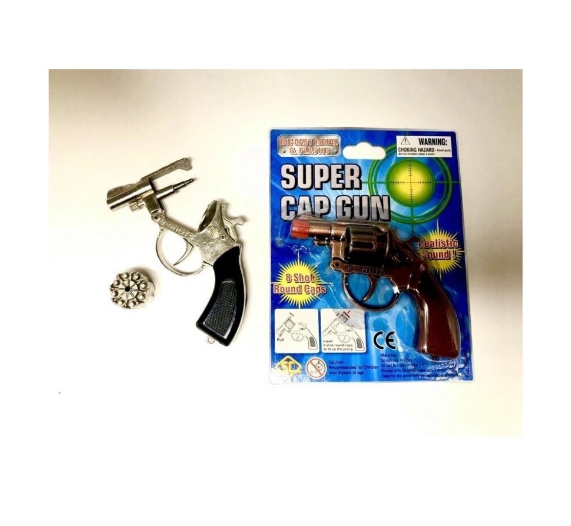 Комплектация:Пугач двух цветов, барабан 8-ми зарядныйОписание:Металлический детский пистолет пугач Super Cap Gun (на пистонах). Теперь ваш ребенок имеет право чувствовать себя настоящим солдатом! Наконец-то он может проверить свои навыки и квалификацию. П