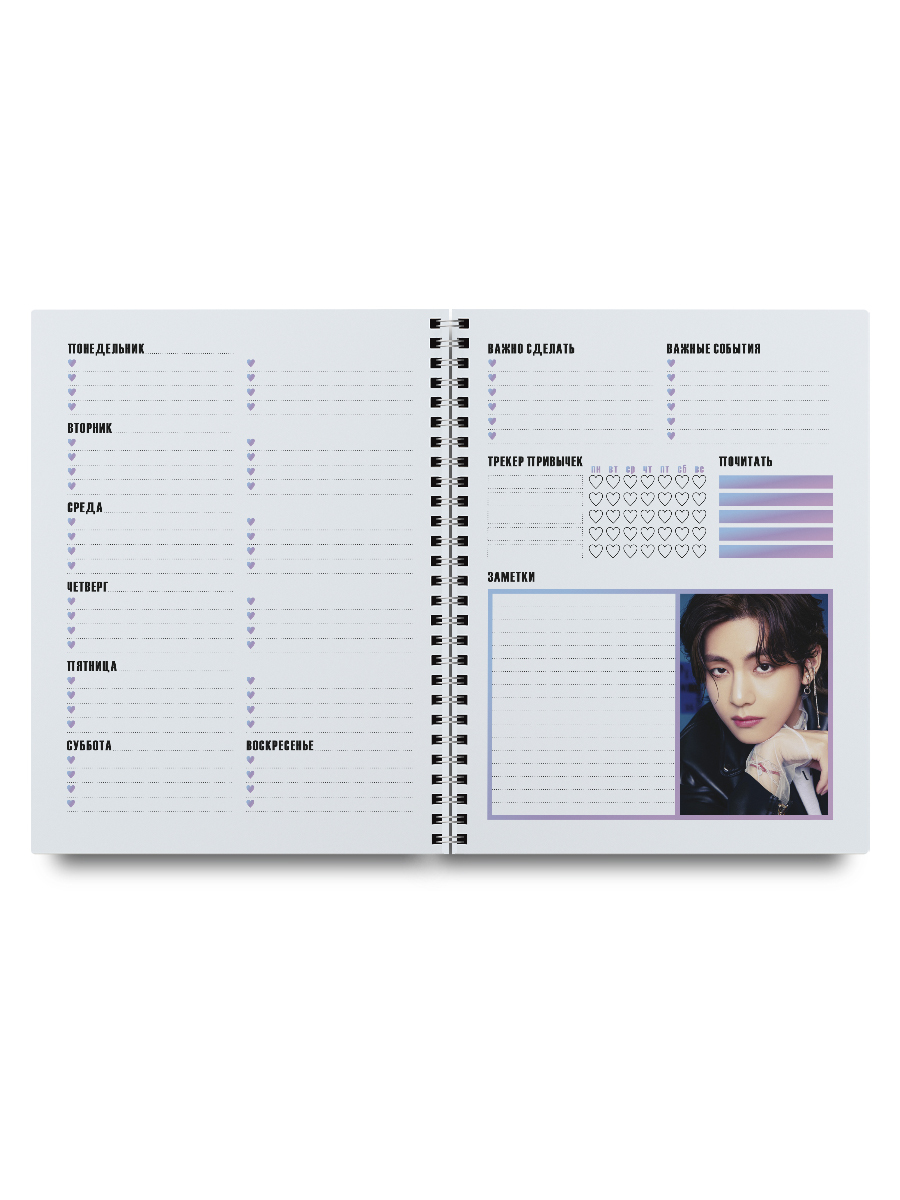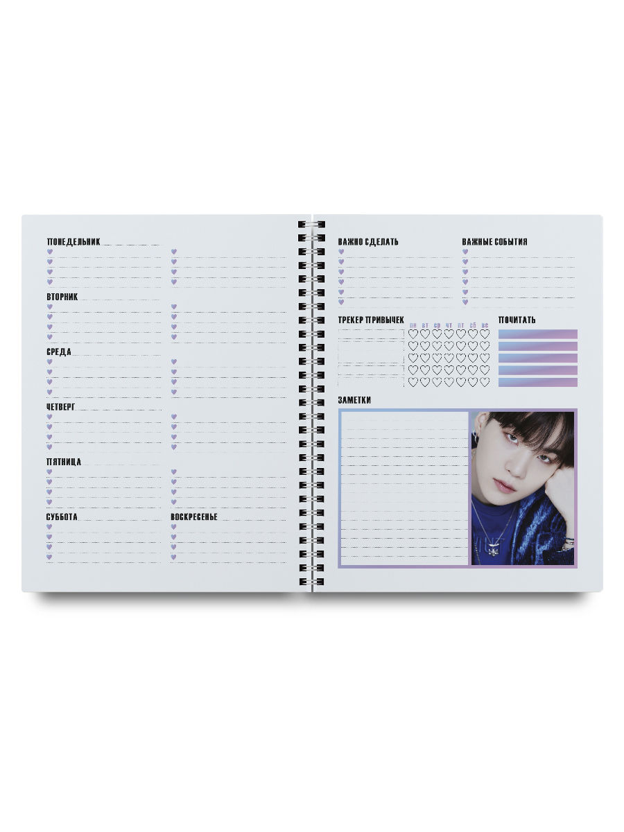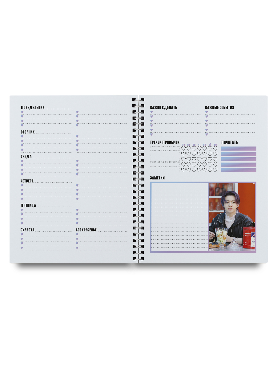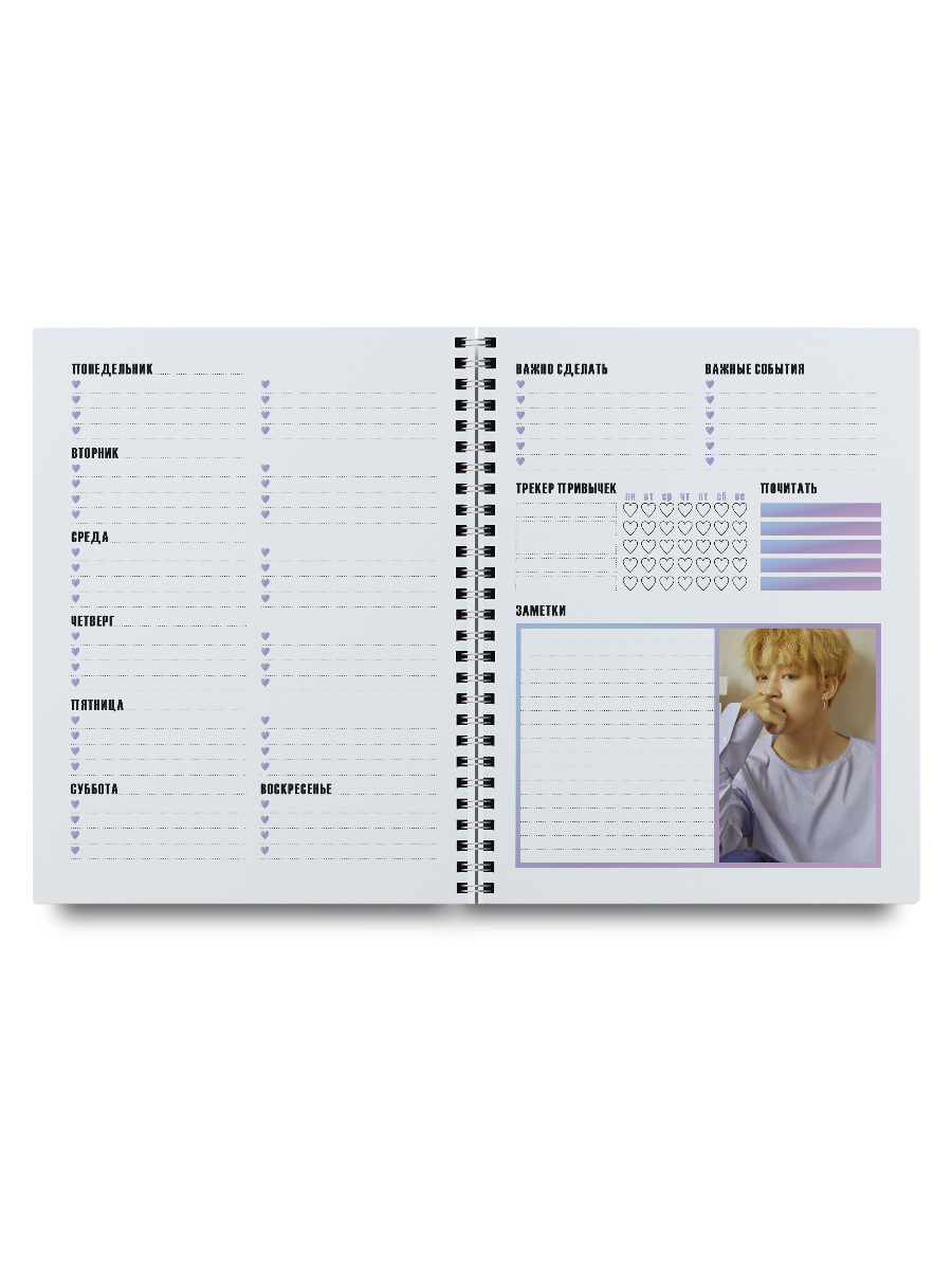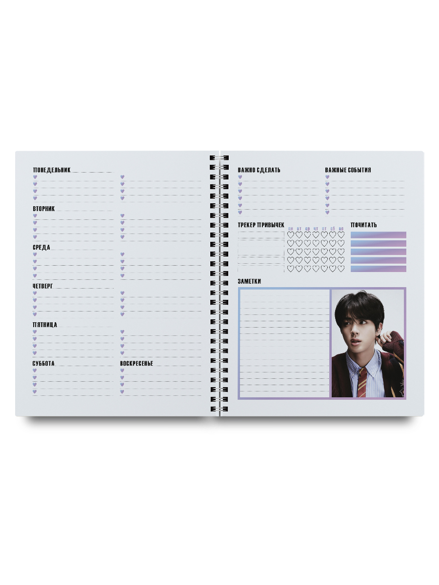 Что может быть лучше, чем каждый день видеть любимые лица BTS?Мы подготовили планер (недатированный ежедневник) с любимыми героями BTS для вас!Яркий, классный недатированный планер (ежедневник) BTS будет надежным помощником в делах. В ежедневник (планер)