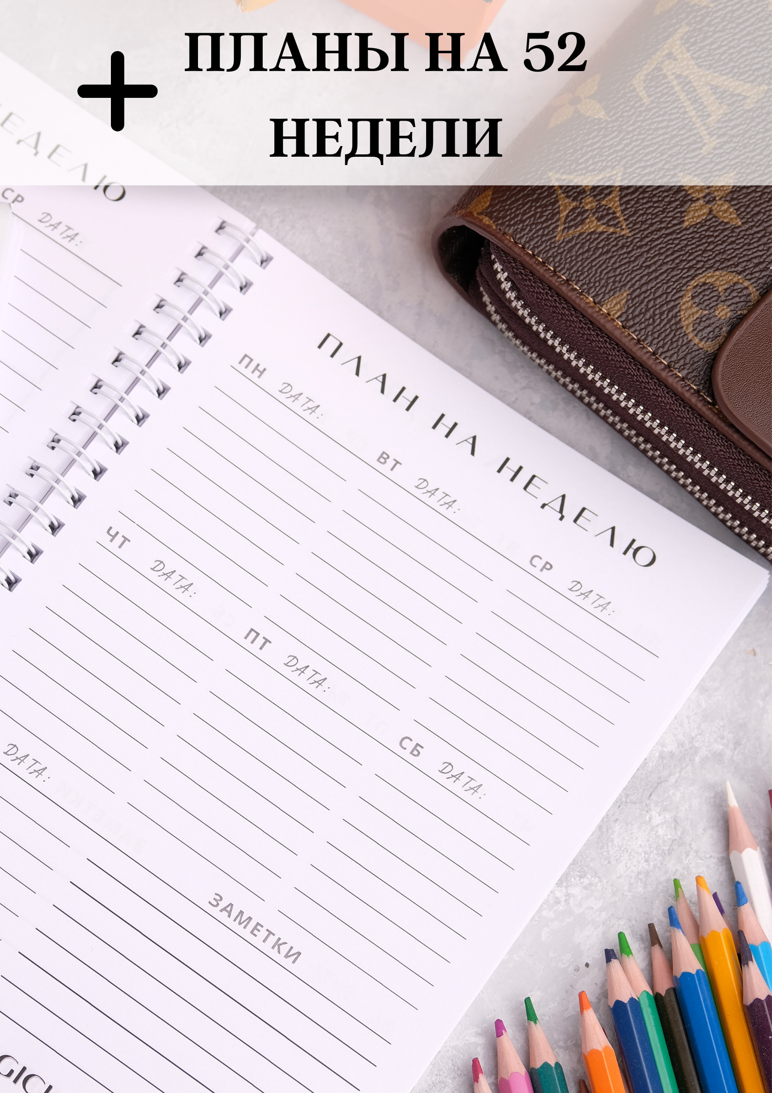 3 в 1: планер, ежедневник и еженедельник MAFICLIFE поможет тебе фиксировать все свои планы, желания и цели в одном месте.Яркий дизайн с фразой "Все идет по плану. Я все могу" будет мотивировать на новые победы.Он рассчитан на 1 год: смело пиши планы на 12