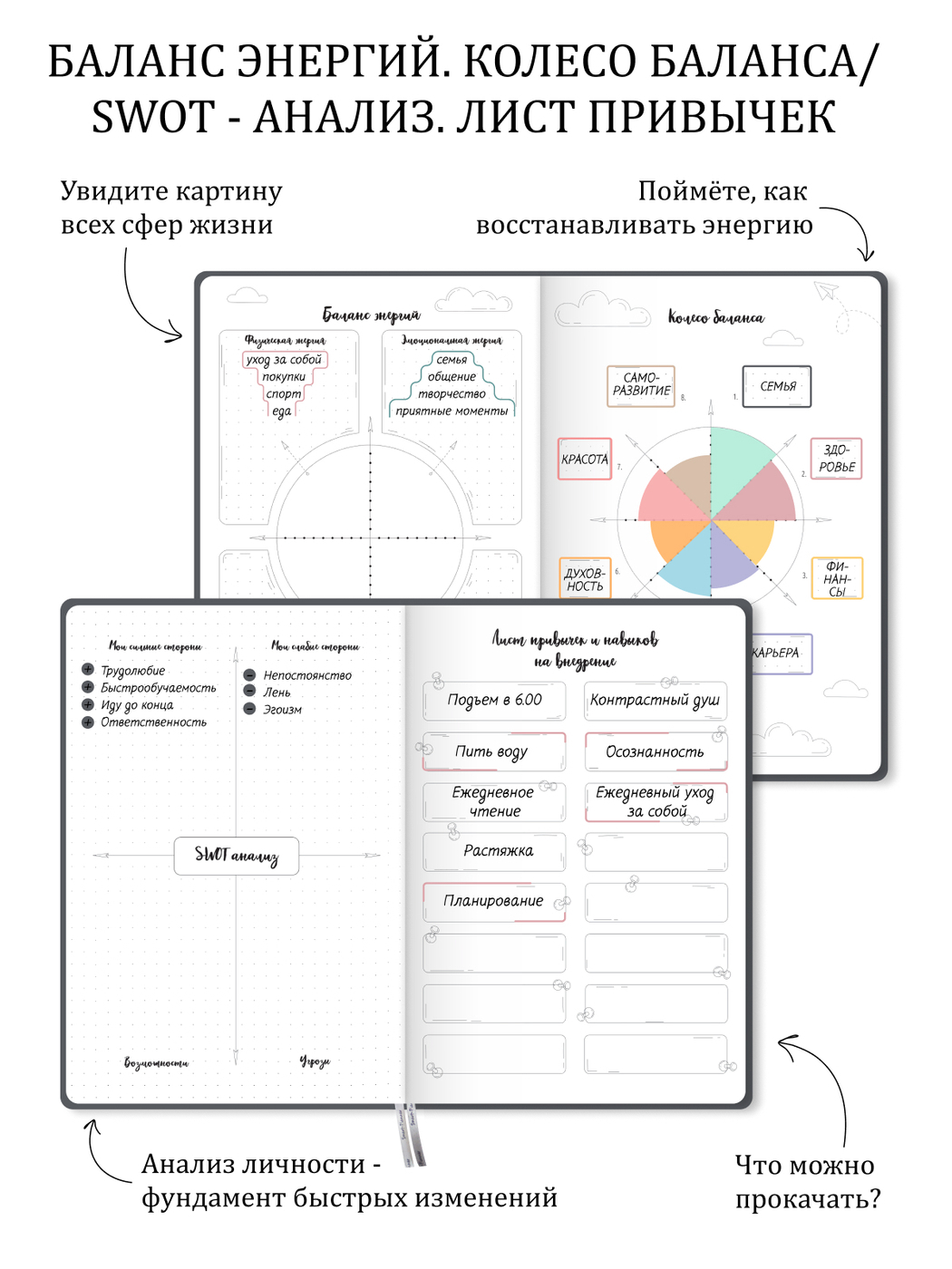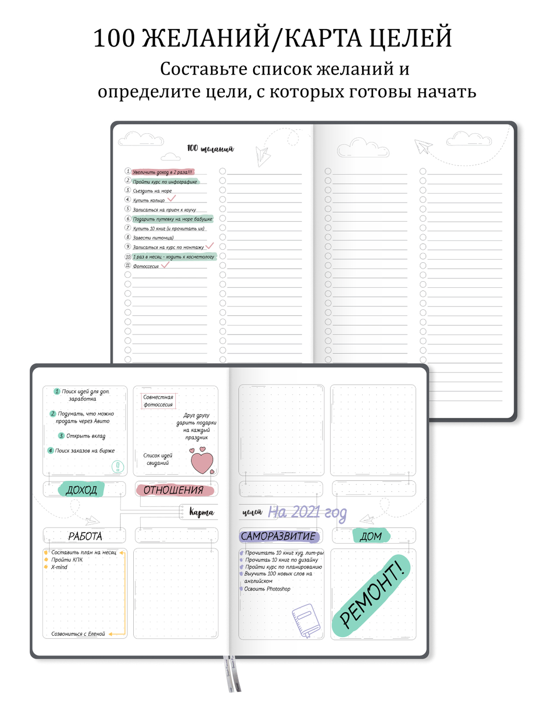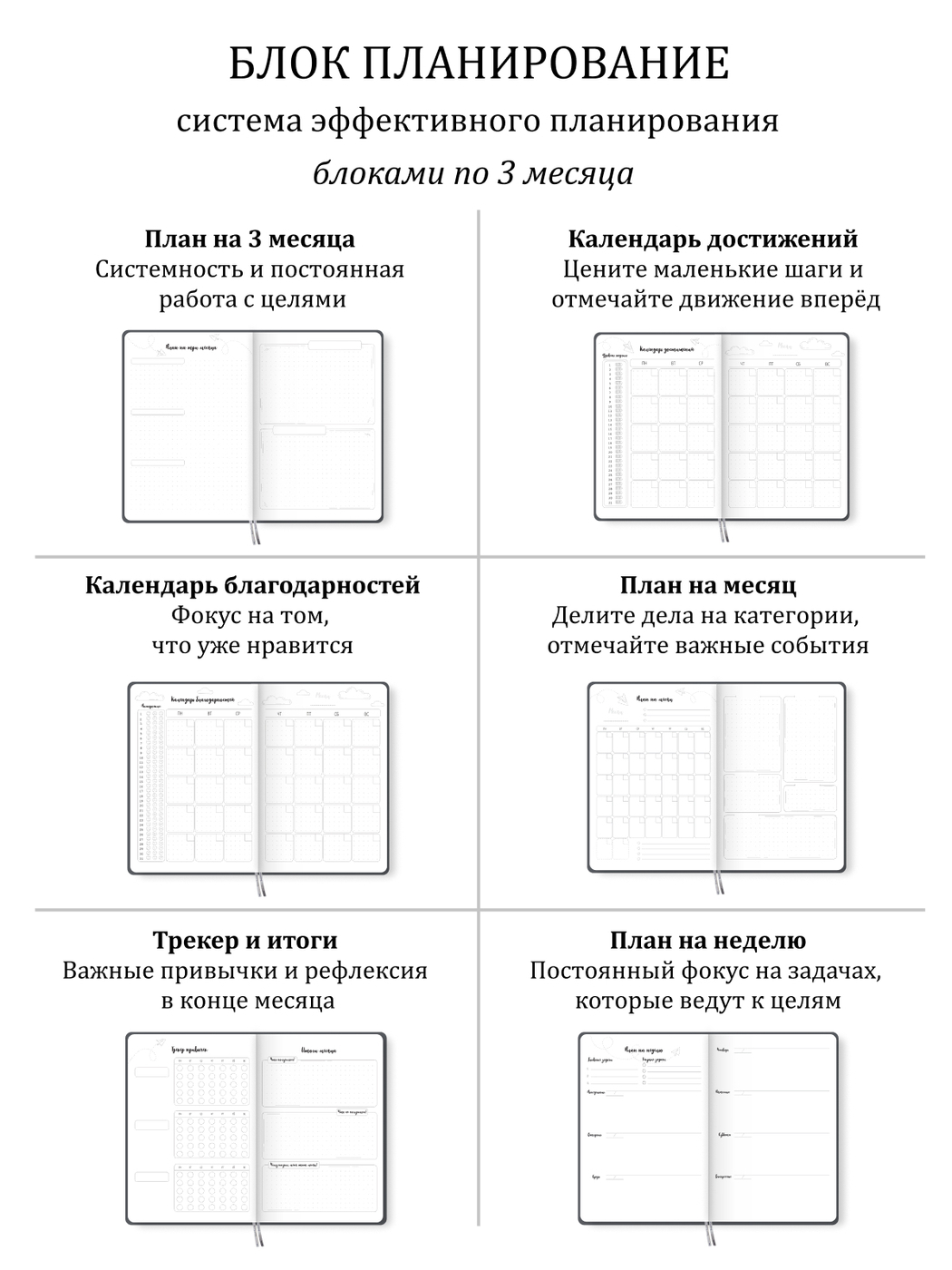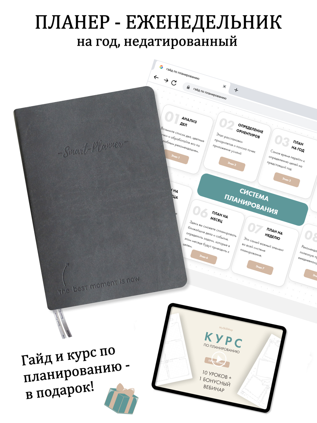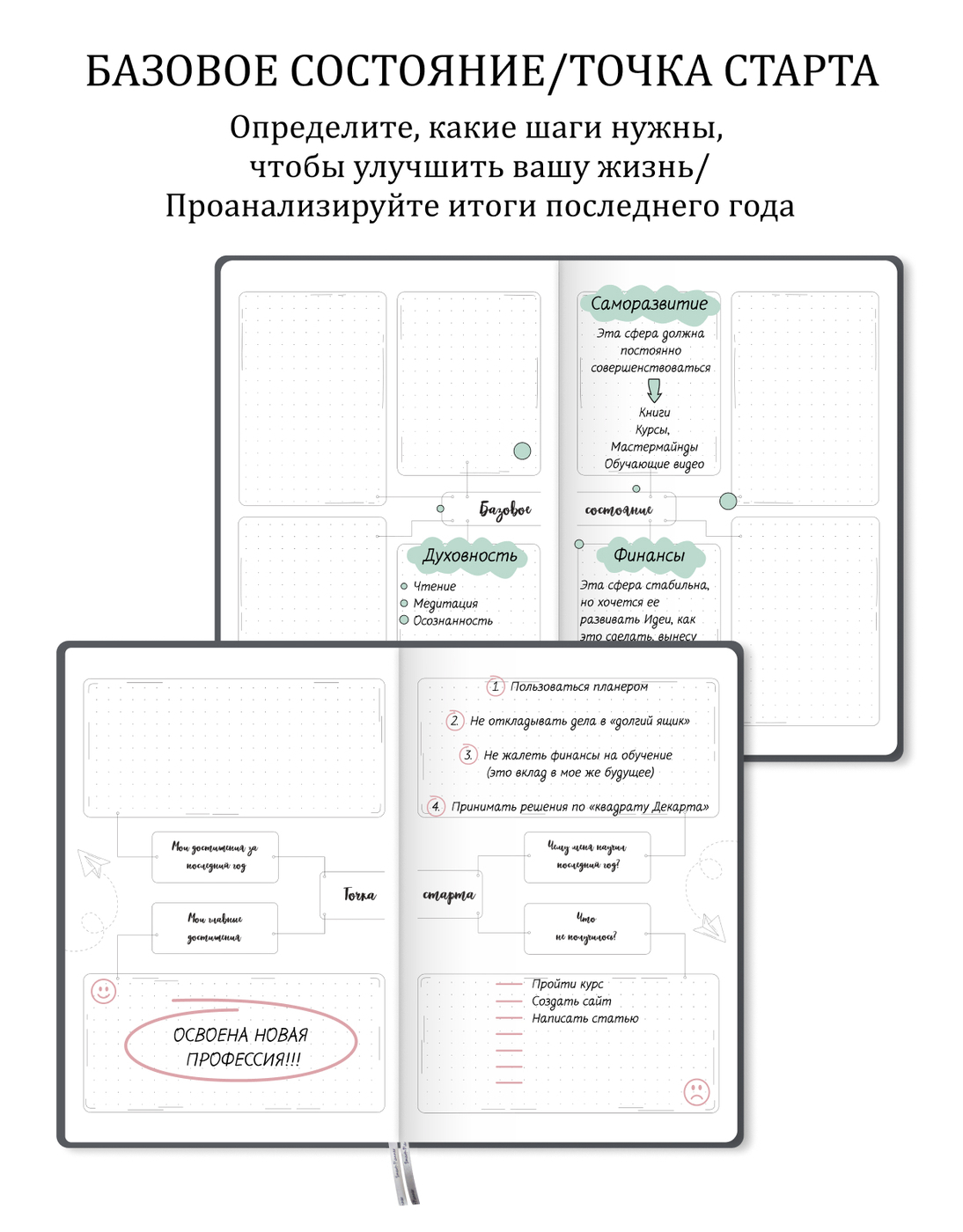 Как достичь за ГОД больше, чем за всю жизнь.Планер для эффективного достижения целей.На год, недатированный.К планеру прилагается гайд и курс по планированию. С ними вы сможете спокойно и уверенно, используя планер как рабочую тетрадь:1. Проанализировать