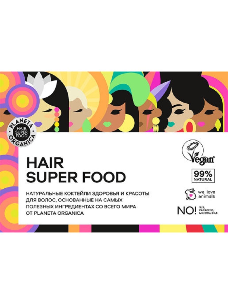 HAIR SUPER FOOD Натуральные коктейли здоровья и красоты, основанные на самых полезных ингредиентах со всего мира. Источник магической силы для твоих волос от Planeta Organica! 1. Создает роскошный объем от корней 2. Дарит волосам природный блеск и силу 3.