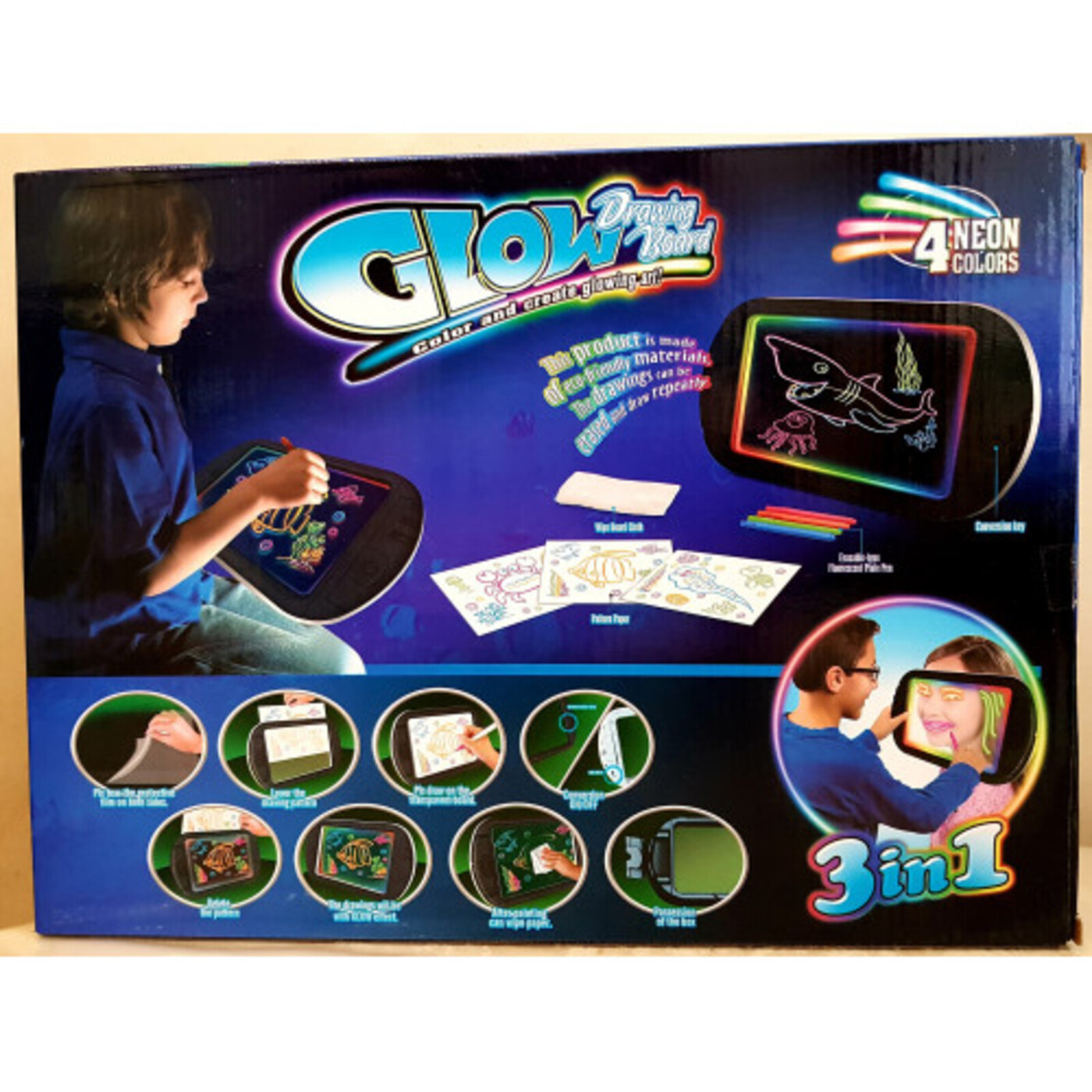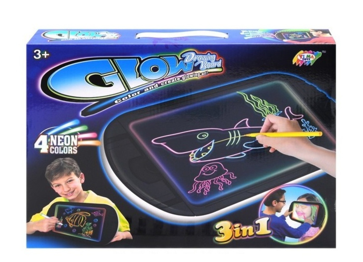 Планшет для рисования, светящийся для детей, доска-планшет для рисования Glow drawing board 3 в 1, Голубой.Игрушка развивающая для девочек и мальчиковСветящаяся доска-планшет для рисования Glow drawing board с прозрачной поверхностью позволяет обводить к