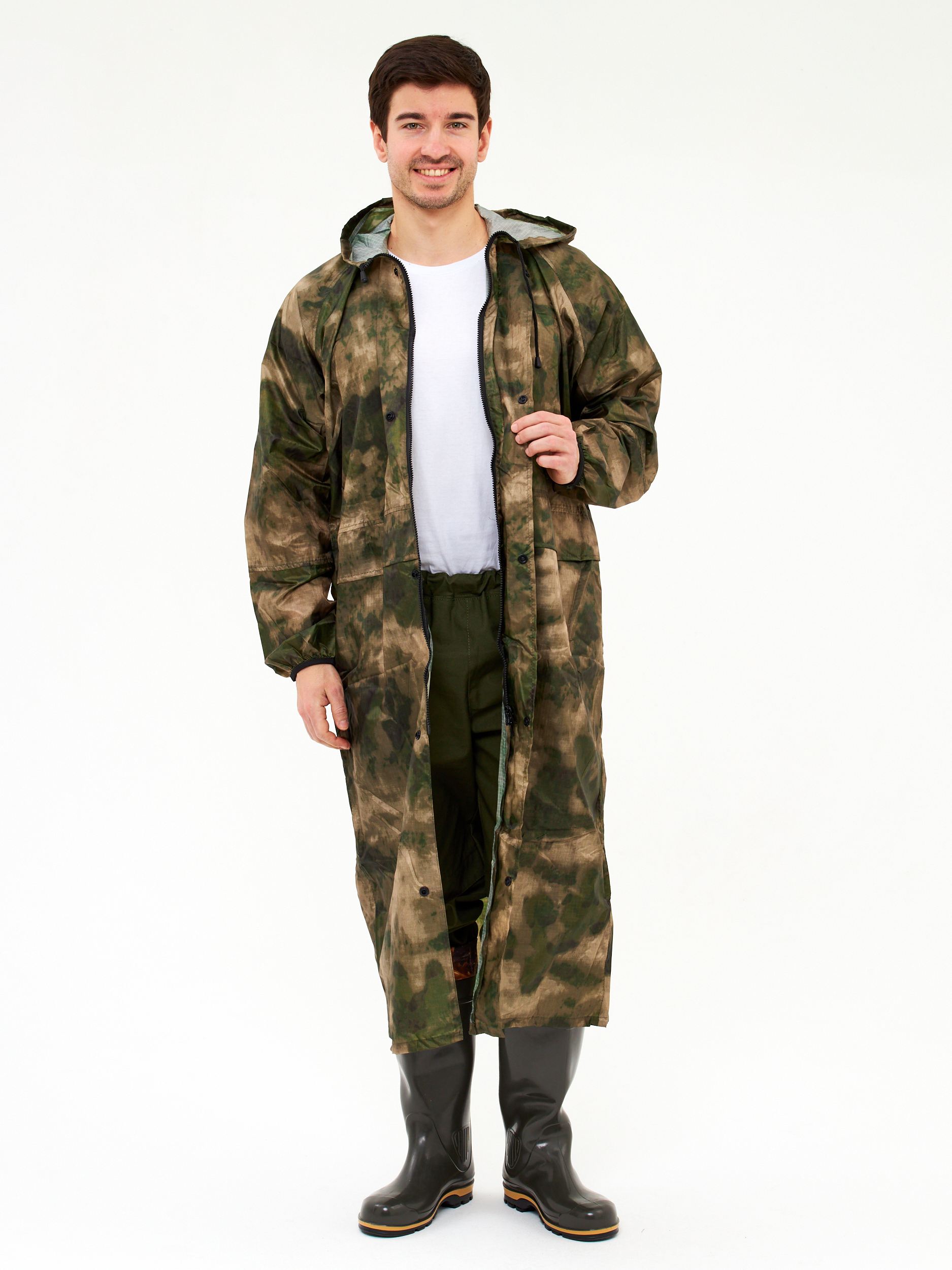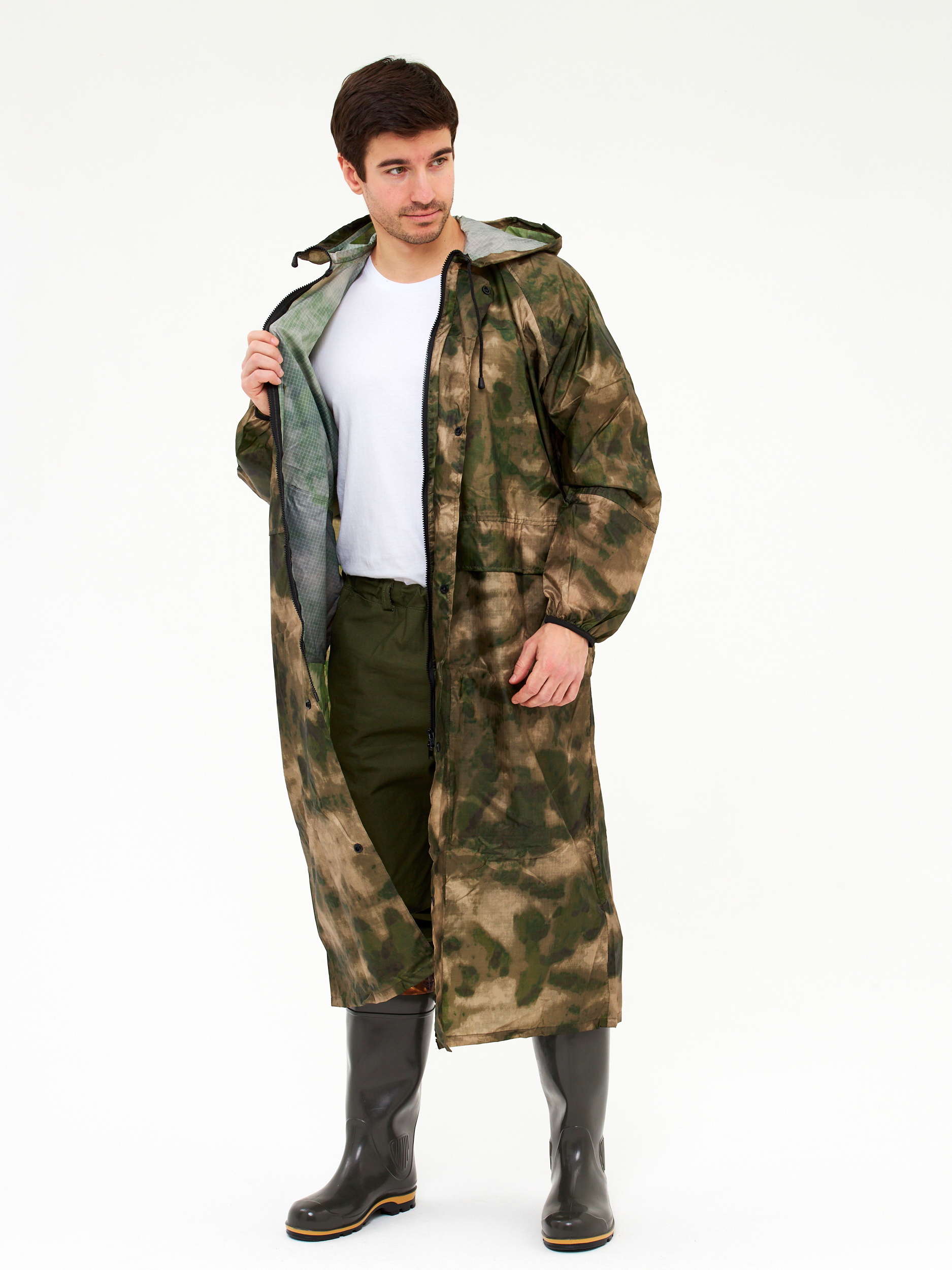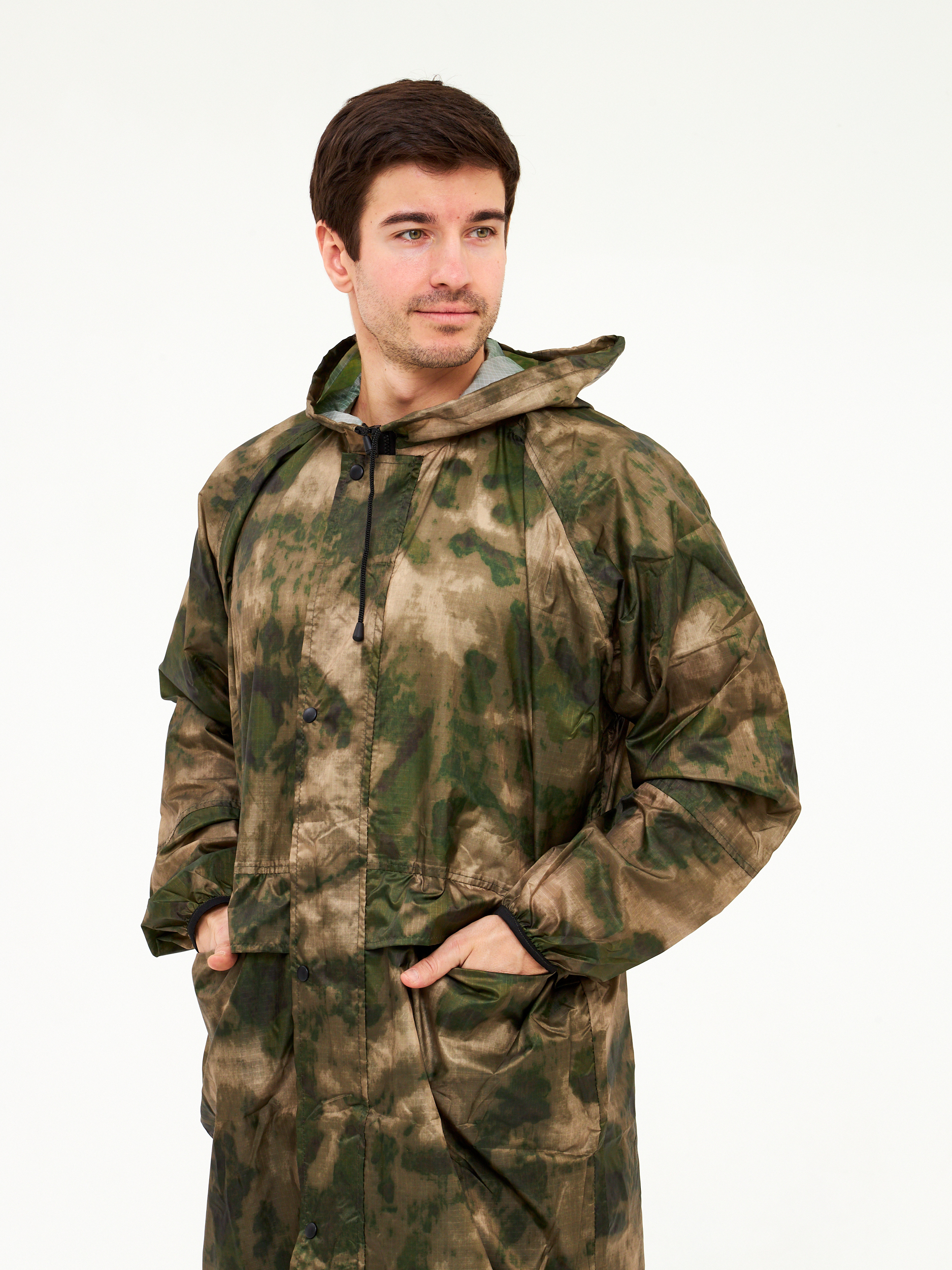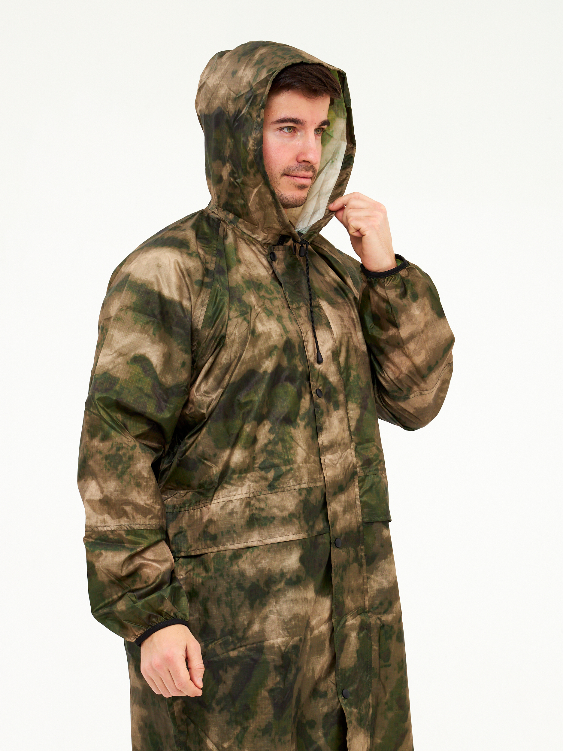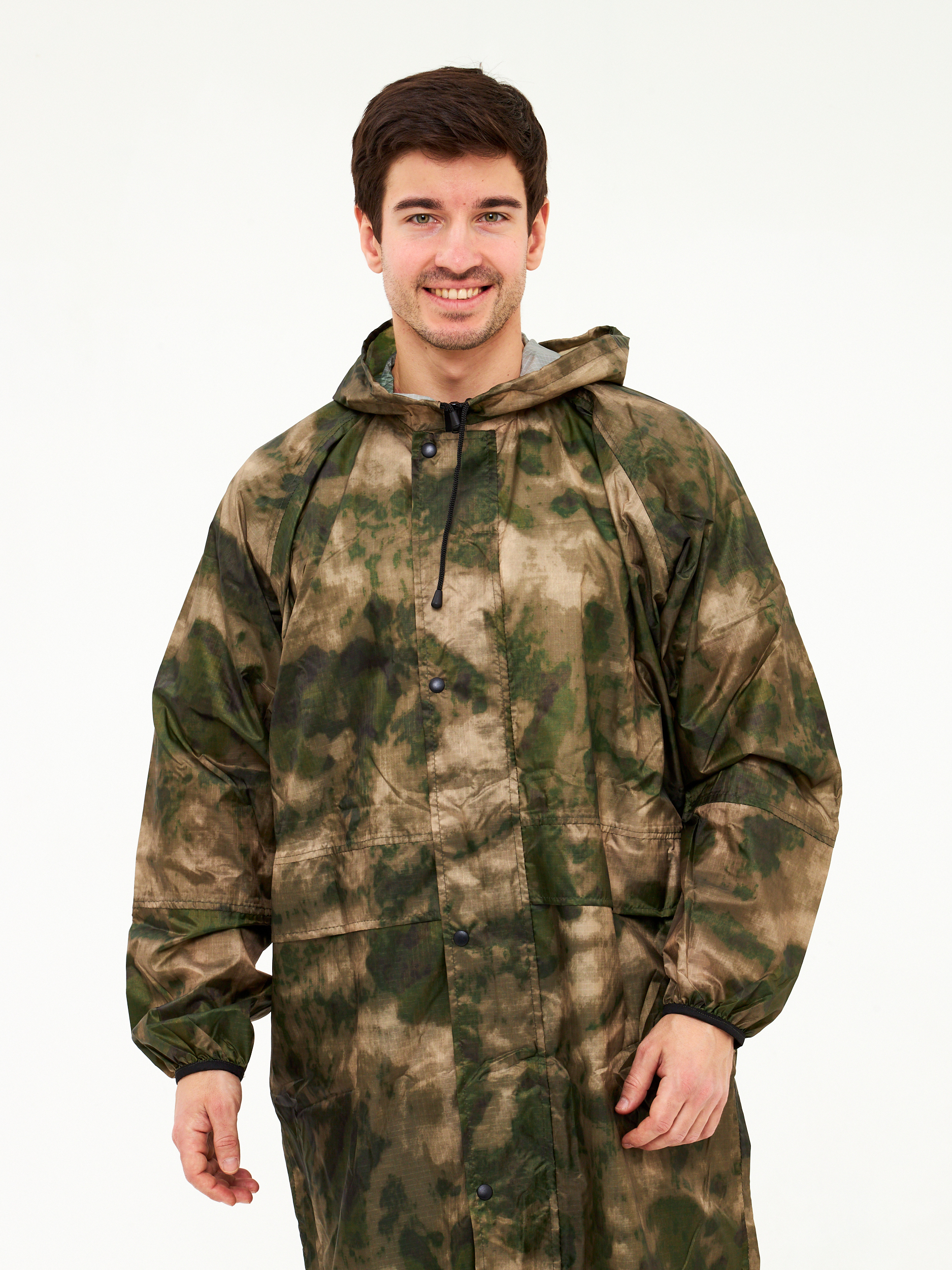 Плащ дождевик Роса непромокаемый с капюшоном для взрослых, дождевик туристический для прогулок в дождь, водонепроницаемый плащ для рыбалки и охоты. Дождевик водоотталкивающий мультикам выполнен из легкого материала Таффета PU(3000). Плащ с капюшоном дожде