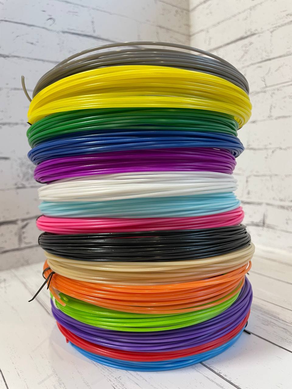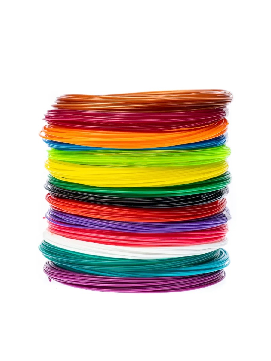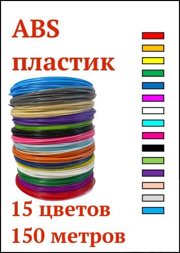 Тип ABS. Качественный набор 3d пластика станет поводом для созданий поделок и заинтересует не только мальчиков и девочек, но и их родителей. Классный набор с ярким разноцветным пластиком: в каждой упаковке 15 ярких цветов, каждый из которых длиною 10 метр