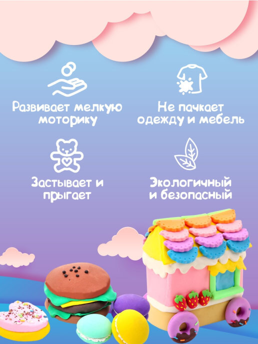 Комплектация:12 штукОписание:Воздушный пластилин не пачкает, не крошится, не деформируется и не тонет. Особенность легкого пластилина не только в его весе, но и в необычной текстуре, он легко лепится, а после высыхания застывает, сохраняя форму фигурки. С