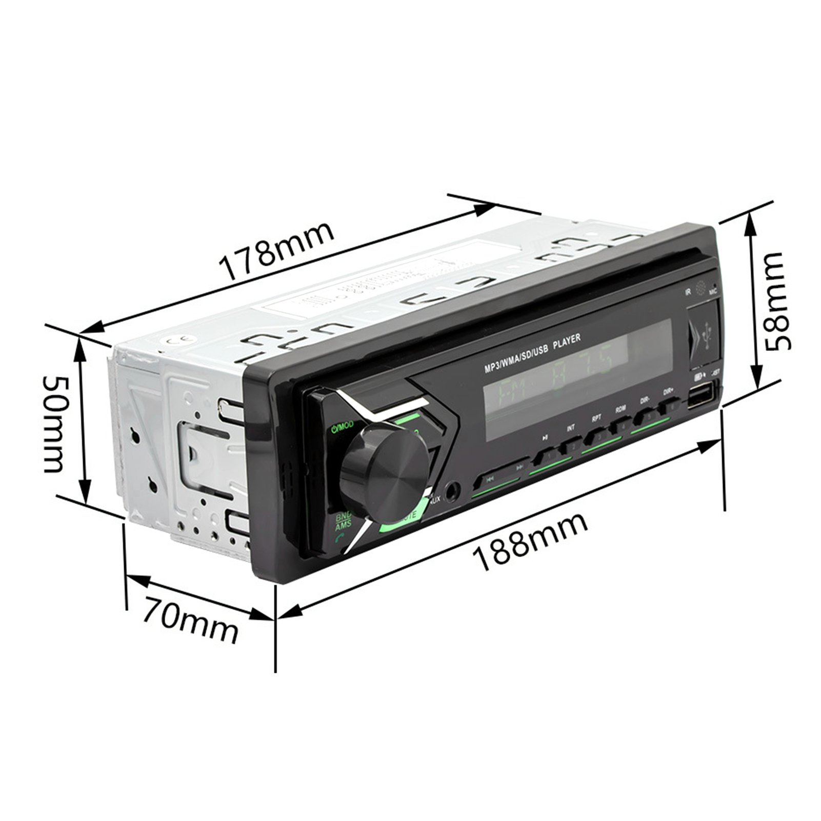 Описание: Радиоплеер имеет множество функций, таких как радио (FM), считыватель карт, U-диск, AUX, Bluetooth-совместимый, аудиовыход RCA, копия источника звука и красочное освещение. Материал: Аппаратные средства. Размер детали: 18,8 см x 5,8 см x 7 см/7,
