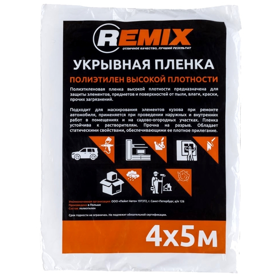 Полиэтиленовая пленка высокой протности предназначена для защиты элементов, предметов и поверхностей от пыли, влаги, краски и прочих загрязнений.Подходит для маскирования элементов кузова при ремонте автомобиля, применяется при проведении наружних и внутр