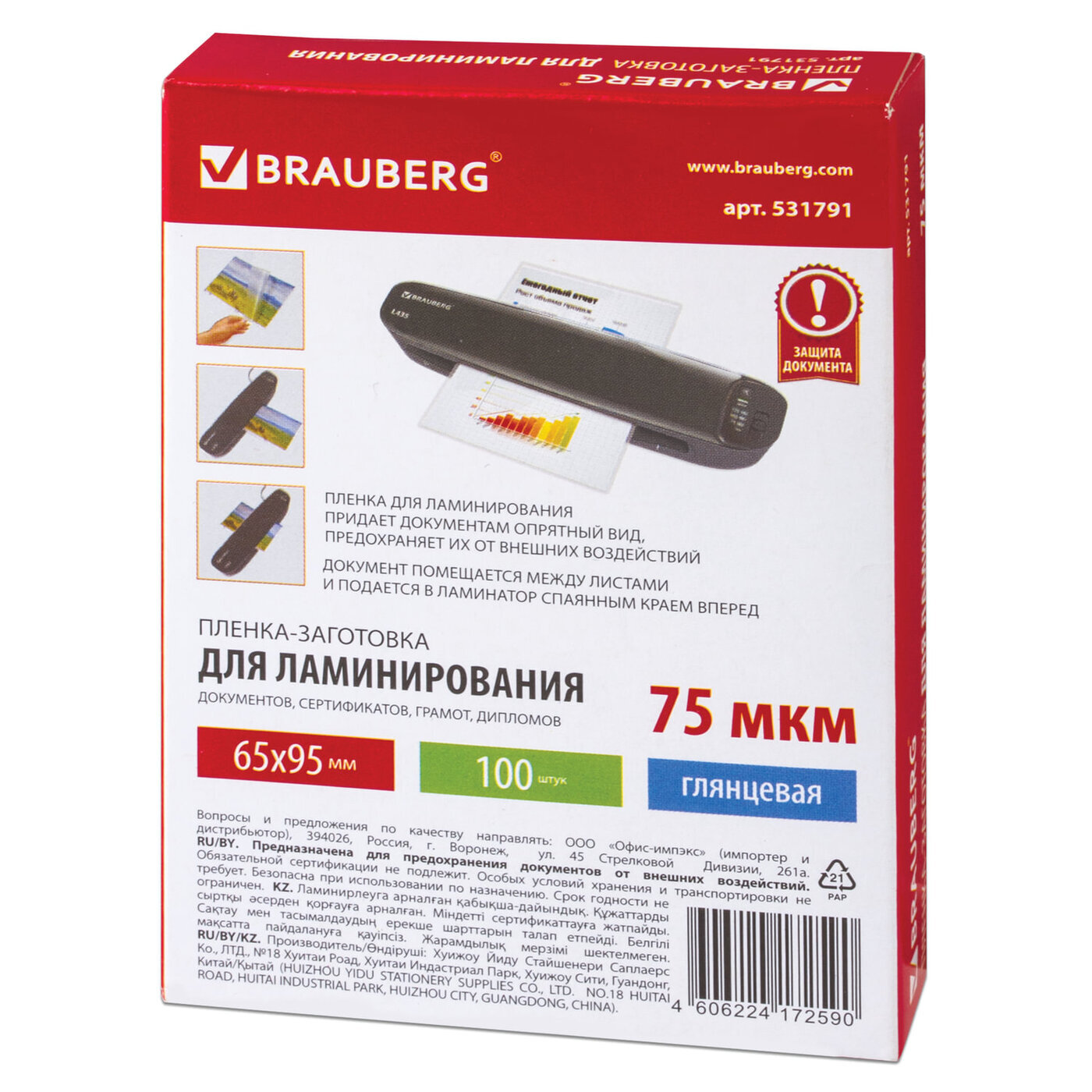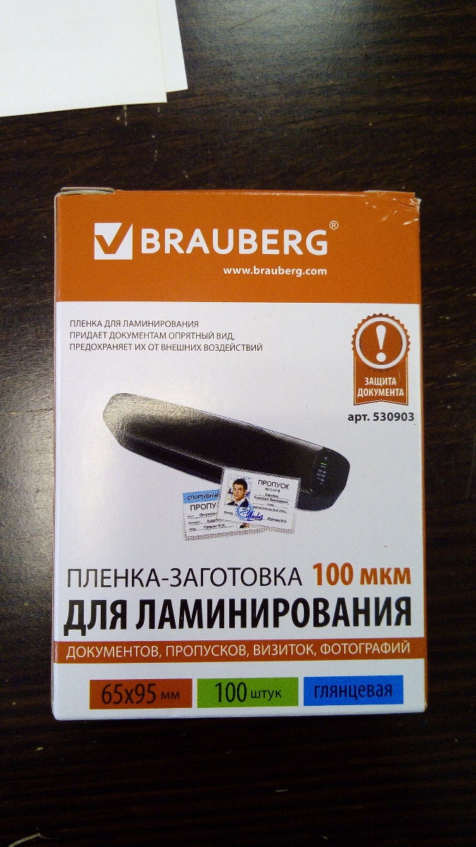 Пленка для ламинирования BRAUBERG надежно защитит документы от влаги, пыли, воздействия УФ-лучей и других внешних факторов.Представляет собой двойной пакет, спаянный с одной стороны (содержание полиэстера > 50%). Документ вкладывается между слоями пленки