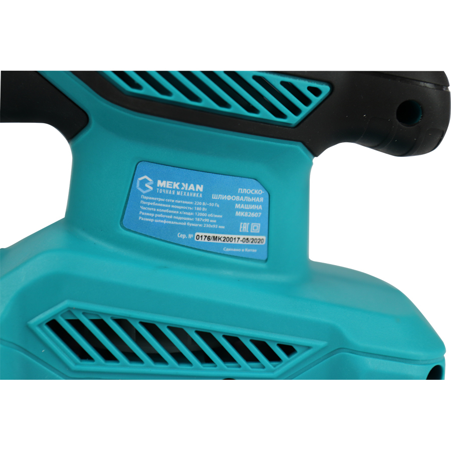 Рабочая поверхность подошвы, мм 187х90Рабочая поверхность шлифовальной бумаги, мм 230х93Обрезиненный корпусНадежное крепление шлифлистаОтдельная крыльчатка на систему пылеудаленияКорпус выполнен из качественного термоустойчивого пластика