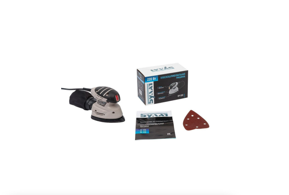Плоскошлифовальная машина БУЛАТ ОР 220 с потребляемой мощностью 220 Вт оснащена пылесборником и шлифовальным листом (размер 140х140х80 мм). ОР 220 ПШМ 220Вт, 140х140х80мм, 15000 об/мин, 30000 кол/мин (утюг) БУЛАТ Плоскошлифовальная машина ''БУЛАТ'' подход
