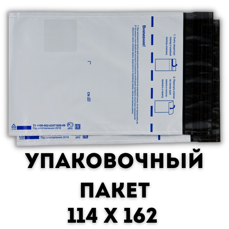 Почтовый Пакет 114х162. Почтовые пакеты изготовлены в соответствии со стандартами Почты России и снабжены усиленными сварными швами. Представляет собой надежную и высокопрочную пластиковую упаковку. Изготовлен из 5-слойной пленки, белой снаружи, черной вн