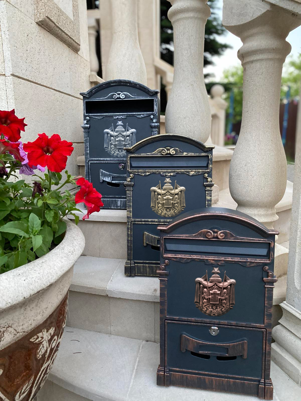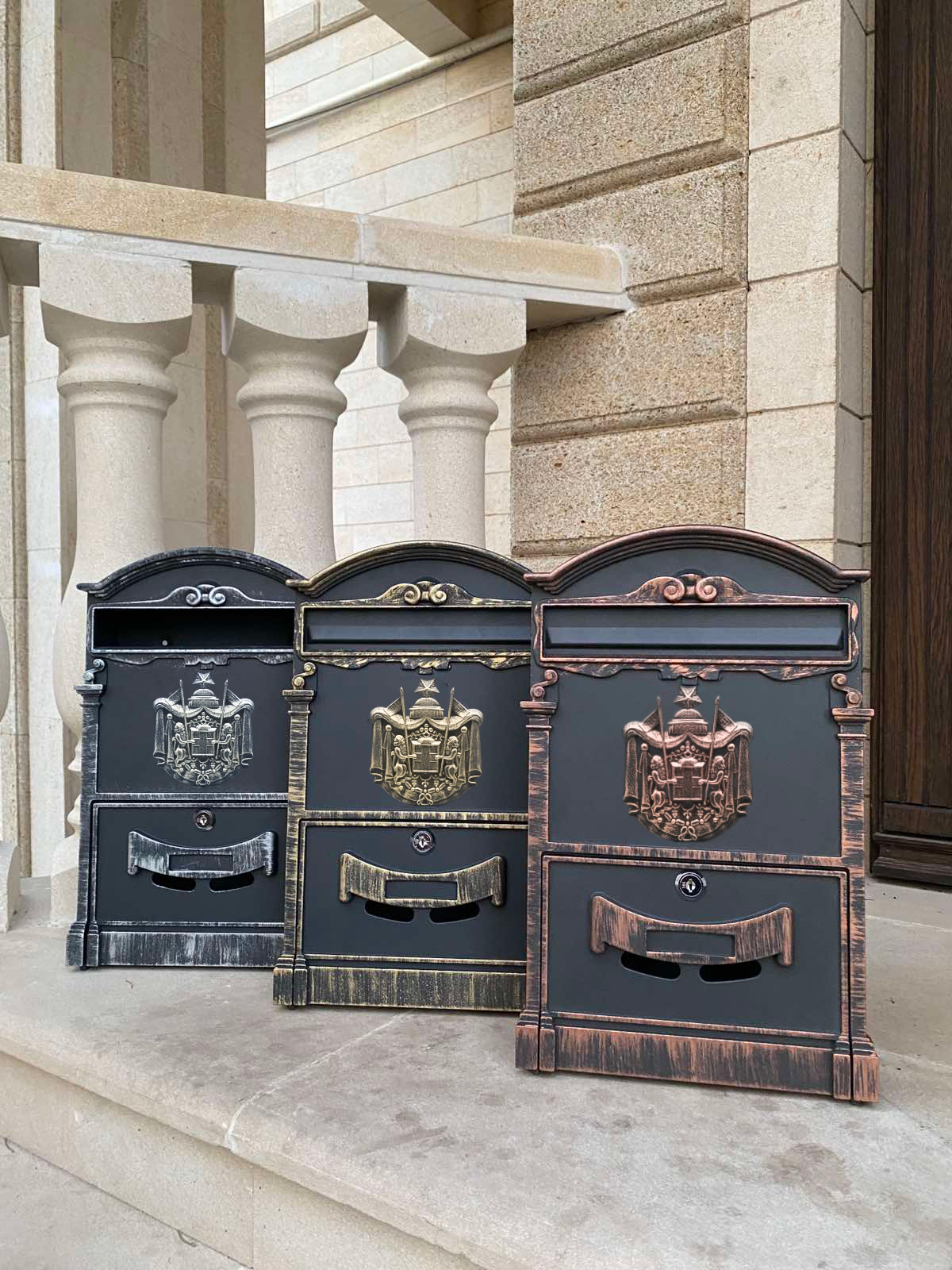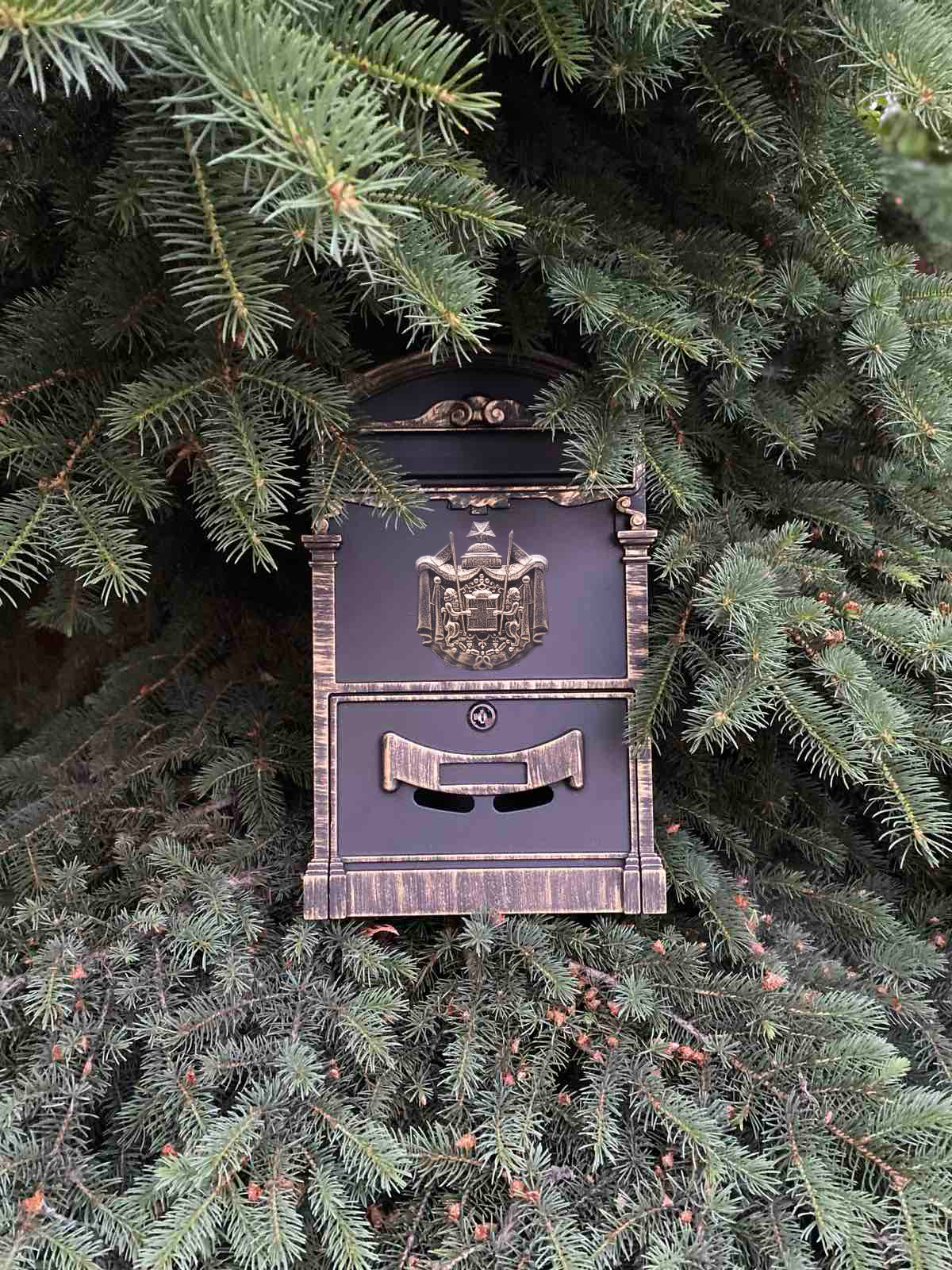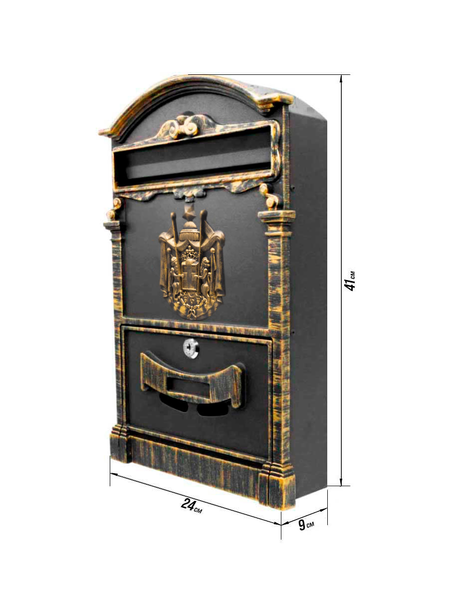 Габариты (ДхШхВ): 410х240х90 мм. Вес: 1700 гр. Материал: сталь. Покрыт порошковой краской и итальянской патиной.Почтовые ящики "Герб", металлические, с ключом производятся из высококачественного, прочного металла который не деформируется от физического во
