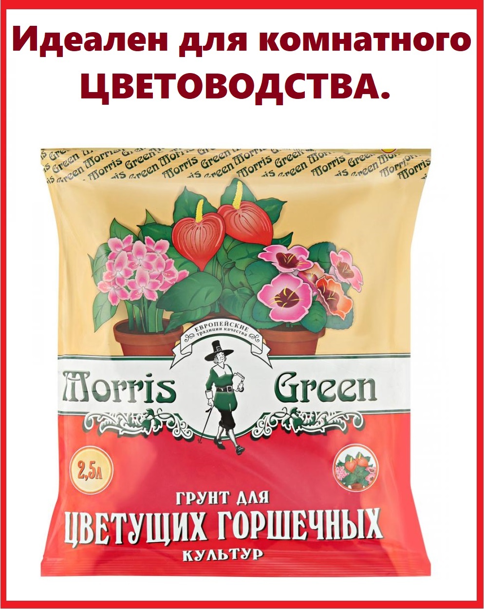 Изготовленный на основе верхового торфа и природных минеральных компонентов грунт выпускается под торговой маркой Morris Green. Он обогащен комплексом питательных веществ, необходимых для выращивания в домашних условиях горшечных культур. К ним относятся