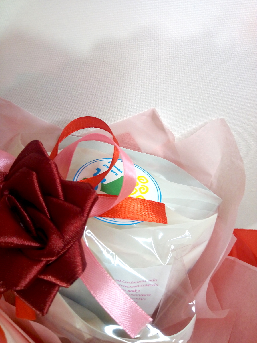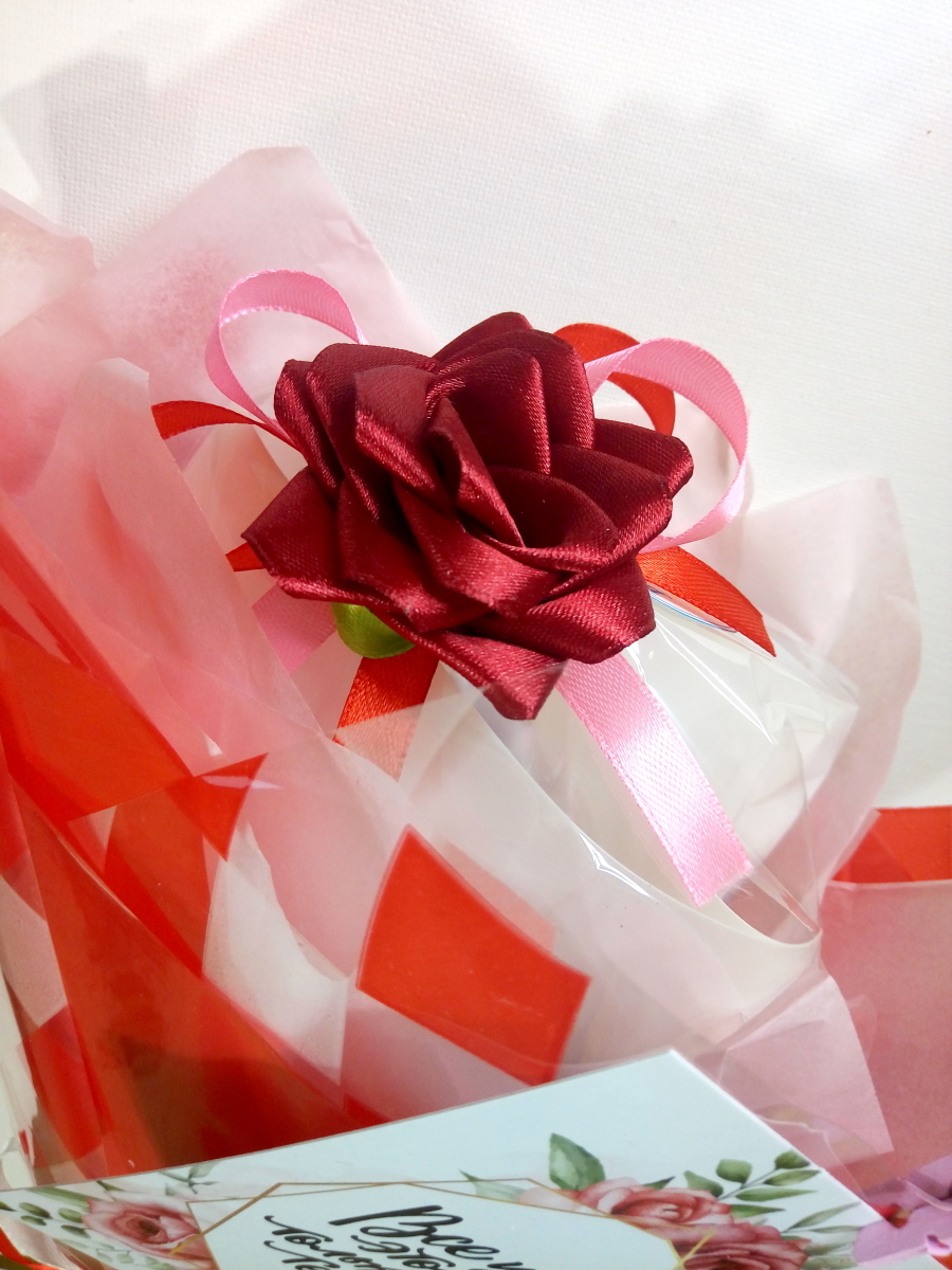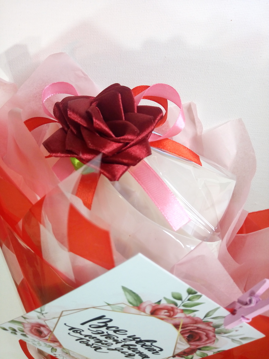 Состав:Подарочный букет для девушки. В состав набора входит: 1. Кофе Paulig Classic в зернах . Вес нетто: 50 гр. Упакован в герметичный zip пакет. 2. Рахат лукум (ассорти). Масса нетто: 125 гр. Упакован в герметичный zip пакет. 3. Смесь чайная ореховая (ф