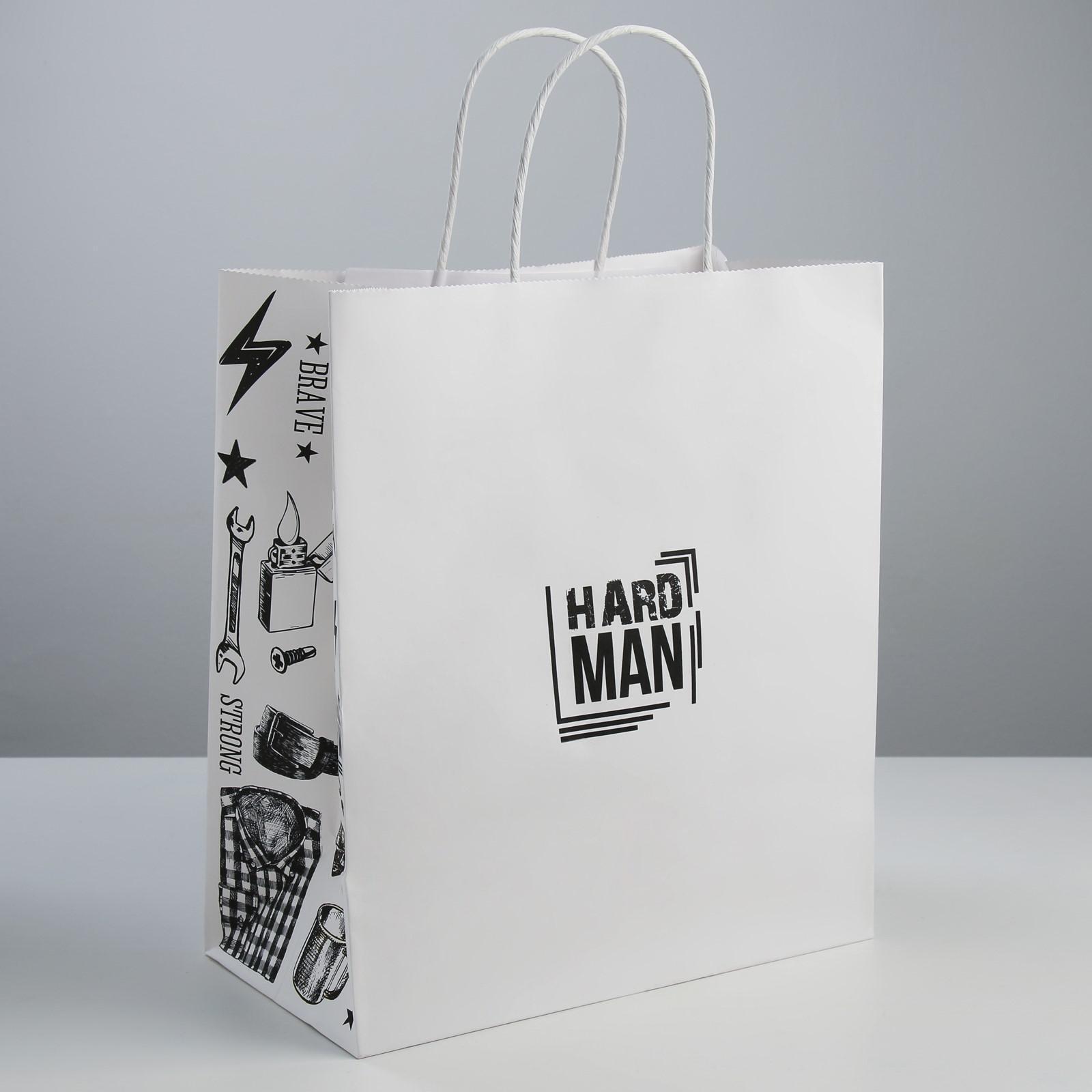 Большого размера 28х32x15 см. Крутой крафтовый, подарочный пакет с надписью "Man rules" с принтом "Бургер", вертикальной ориентации, с ручками из крученого шпагата, крафт бумага плотностью 180 г/м2. Отличная, подарочная упаковка, пакет для подарка другу (