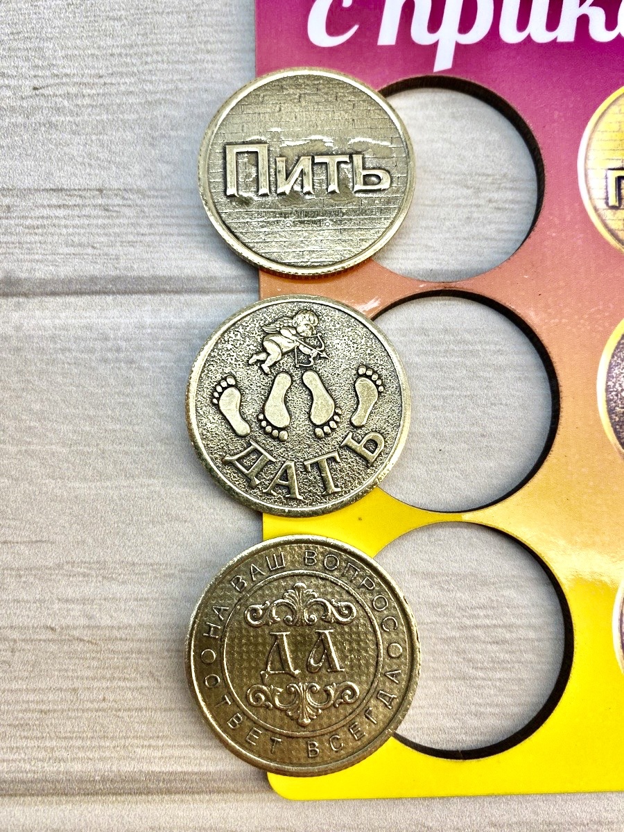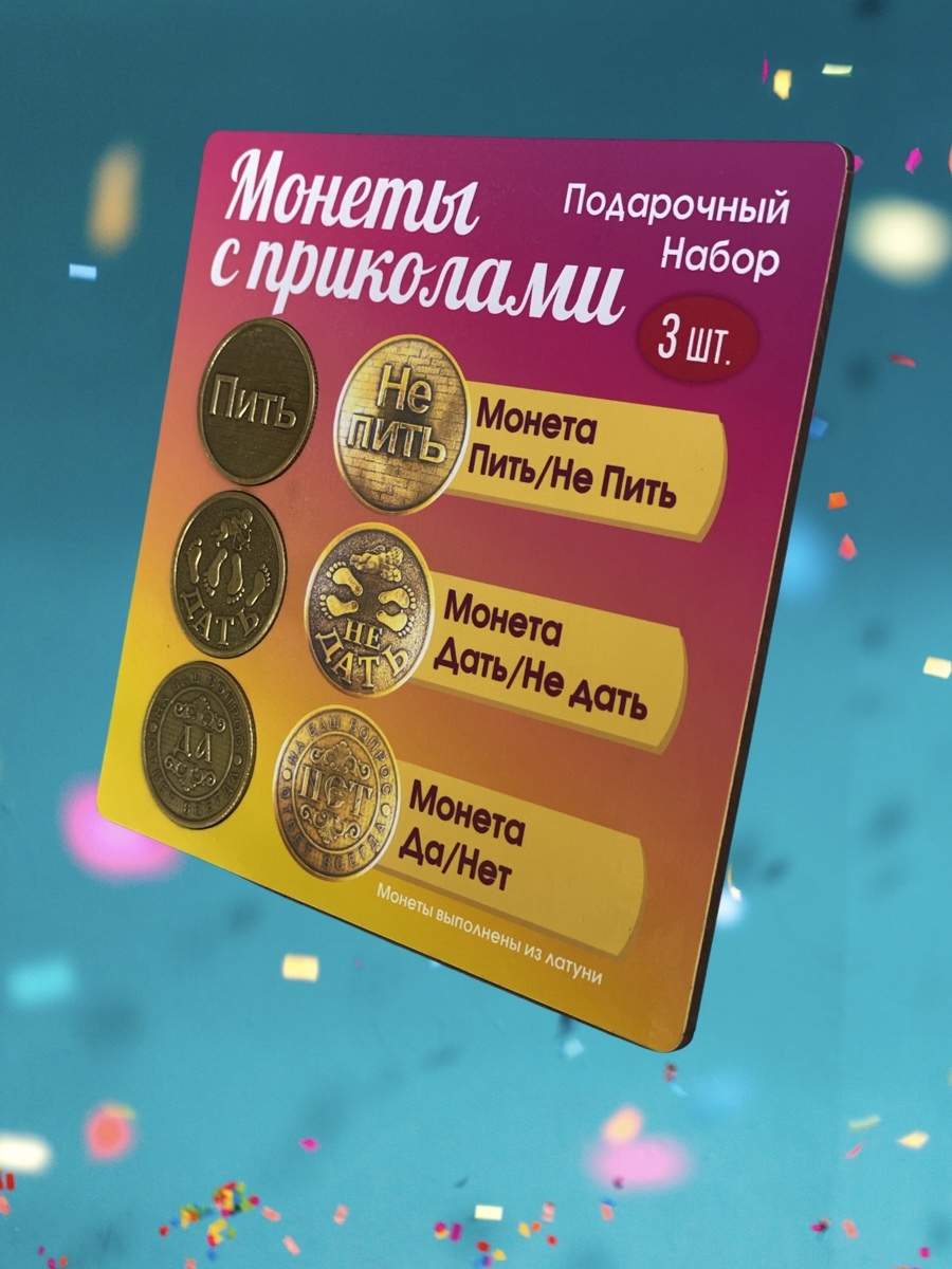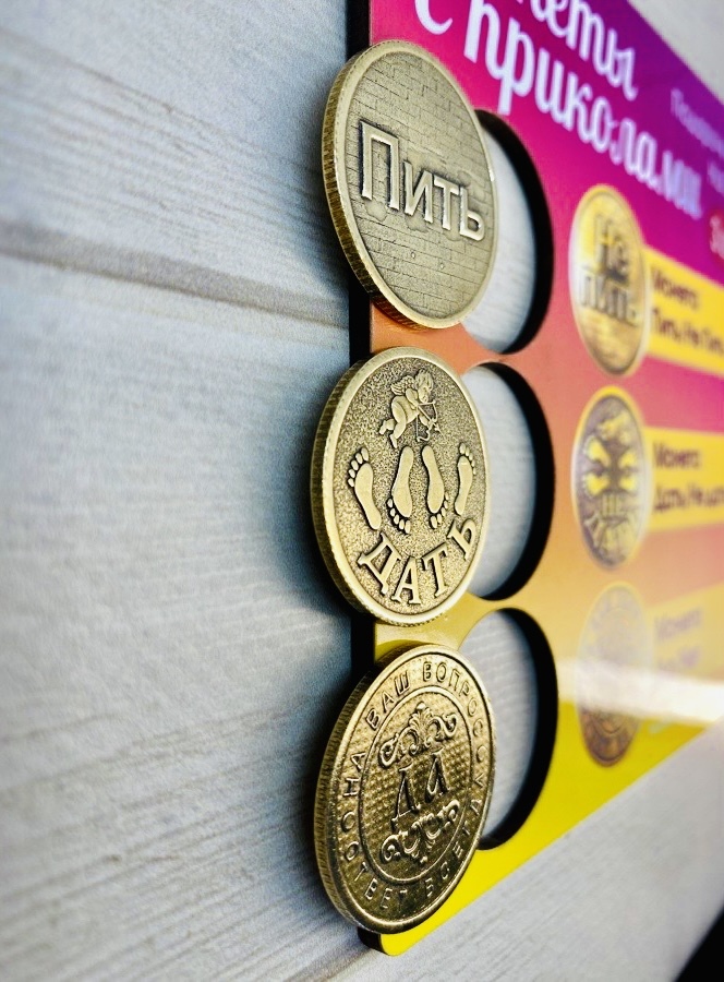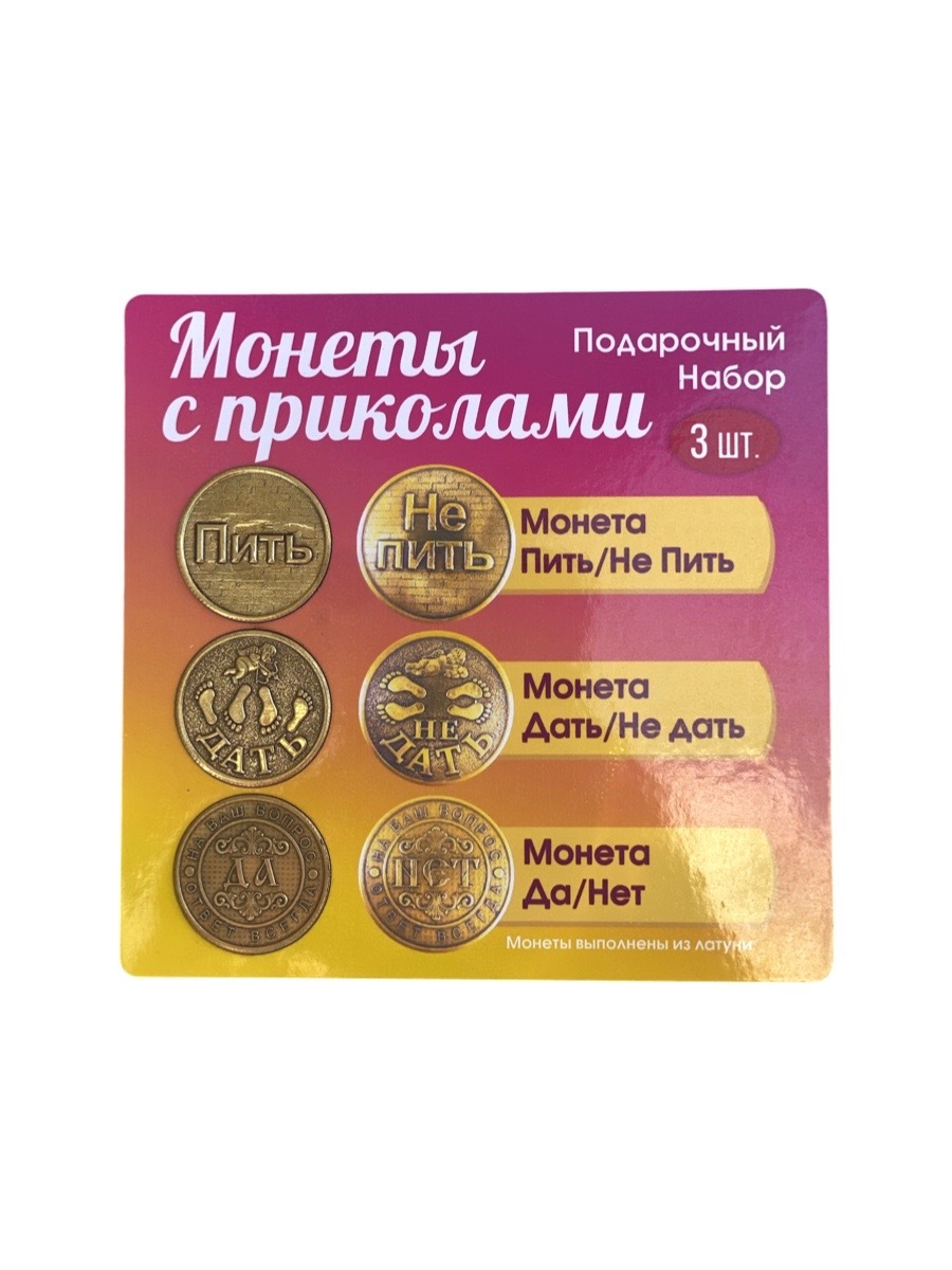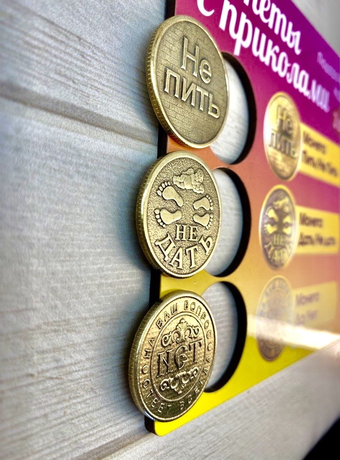 Набор сувенирных монет с приколами, это монеты принятия решения. В наборе 3 монеты выполнены из латуни Российскими мастерами.Набор "Розовый" Монета 1 - "Да - Нет" Монета 2 - "Пить - Не пить" Монета 3 - "Дать - Не дать". Сама планшетка сделана из дерева и