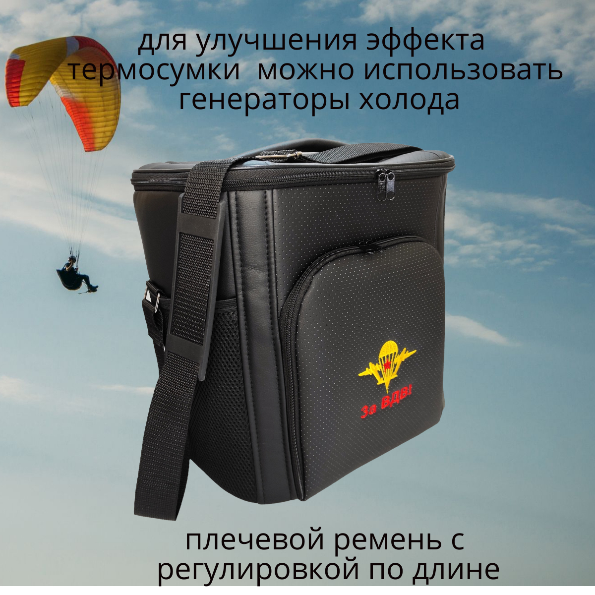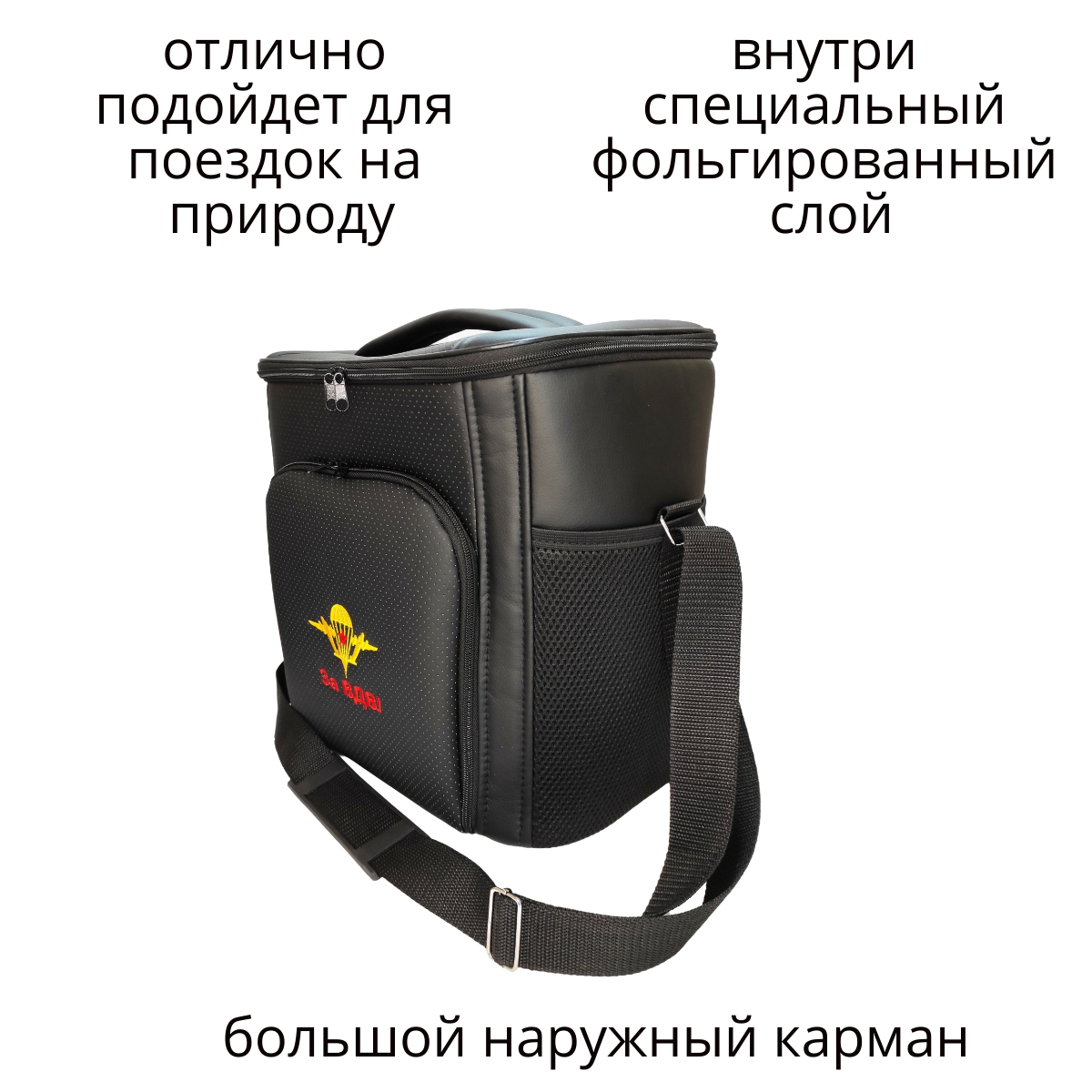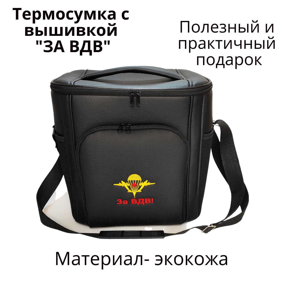 Оригинальный подарочный набор из термосумки и подушки на подголовник с индивидуальной вышивкой «ЗА ВДВ» это отличный подарок мужу, брату, другу, сослуживцу или близкому человеку! В набор входит термосумка с вышивкой и подушка на подголовник. Все изделия