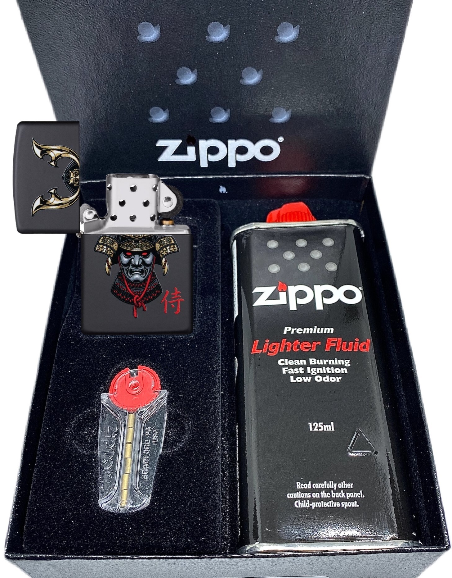 Подарочный набор Zippo – прекрасный способ преподнести в подарок шикарную ветроустойчивую зажигалку Zippo.В японской культуре самураи считаются символом уважения, знатности и силы. На этой модели Black Matte красуется традиционный шлем самурая, нанесенный
