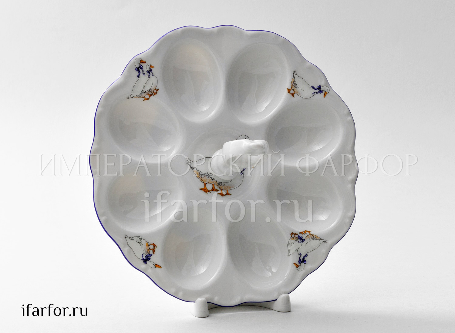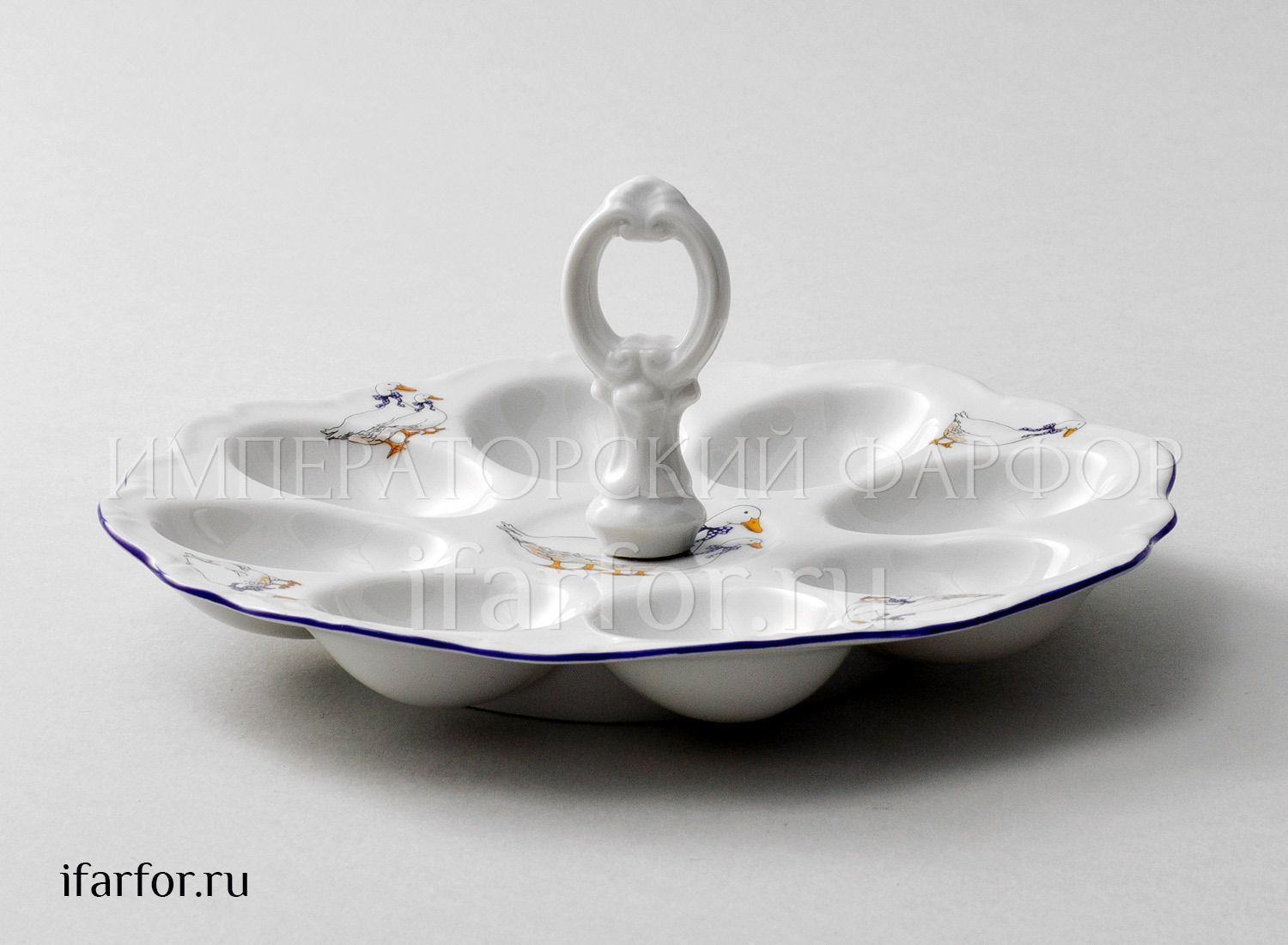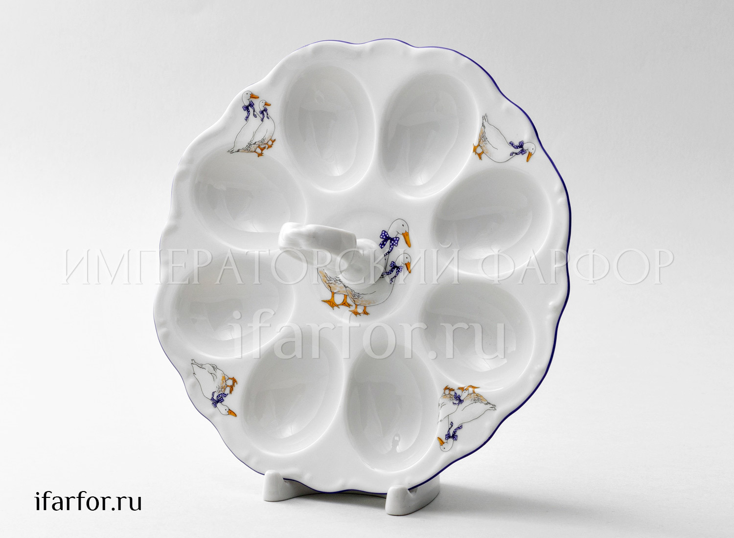 Поднос для яиц Корона Гуси 3 Форма: КоронаИзделие изготовлено из материала: ФарфорДиаметр: 200 ммВозможны варианты росписи. Если необходимо точное соответствие фотографии товара - отметьте это в комментарии к заказуПроизводитель: Чехия