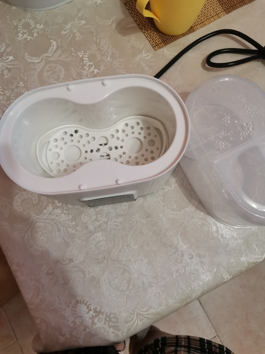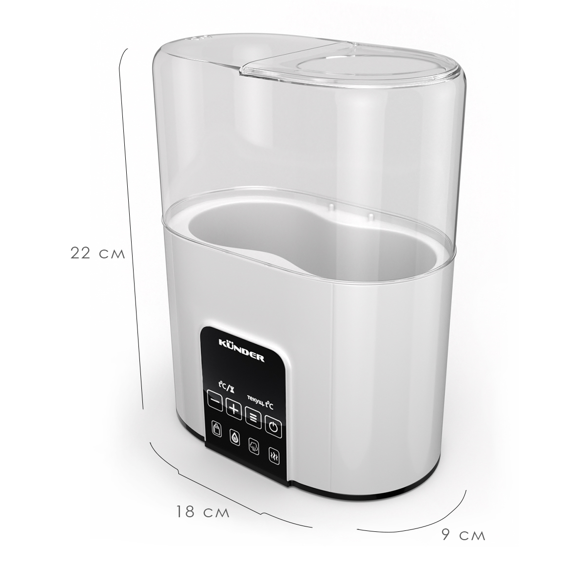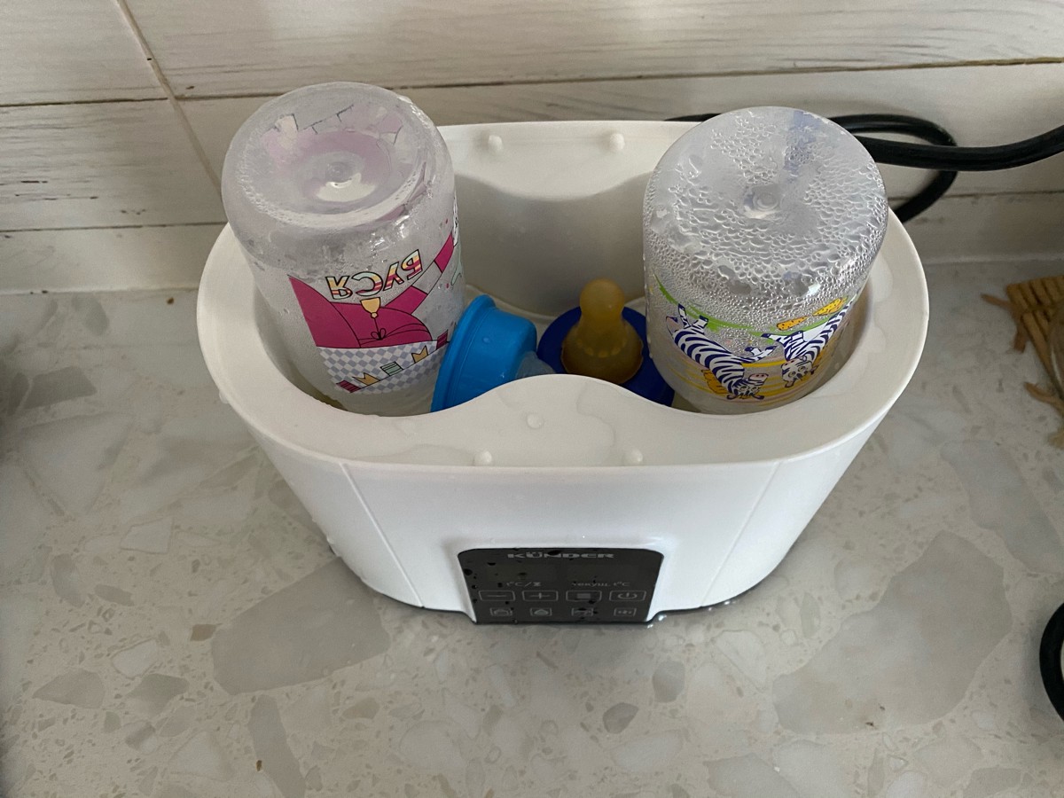 Универсальный подогреватель на 2 бутылочки с дополнительными функциями: подогрев, разморозка, стерилизация, варка на пару.Габариты подогревателя: 19 см -ширина, 11-толщина, 22 см высота. В подогреватель войдут бутылочки диаметром до 7 см в количестве 2 шт