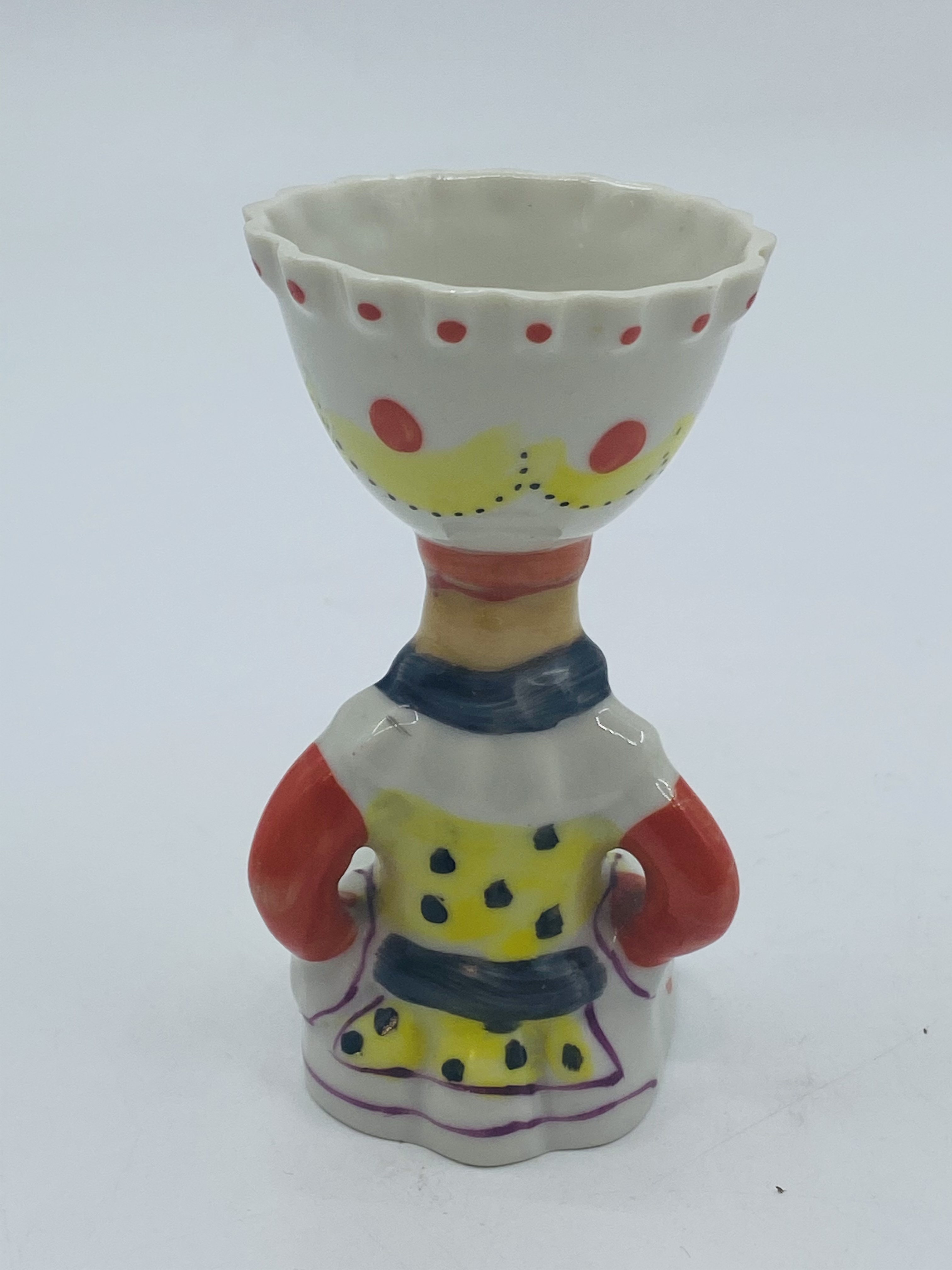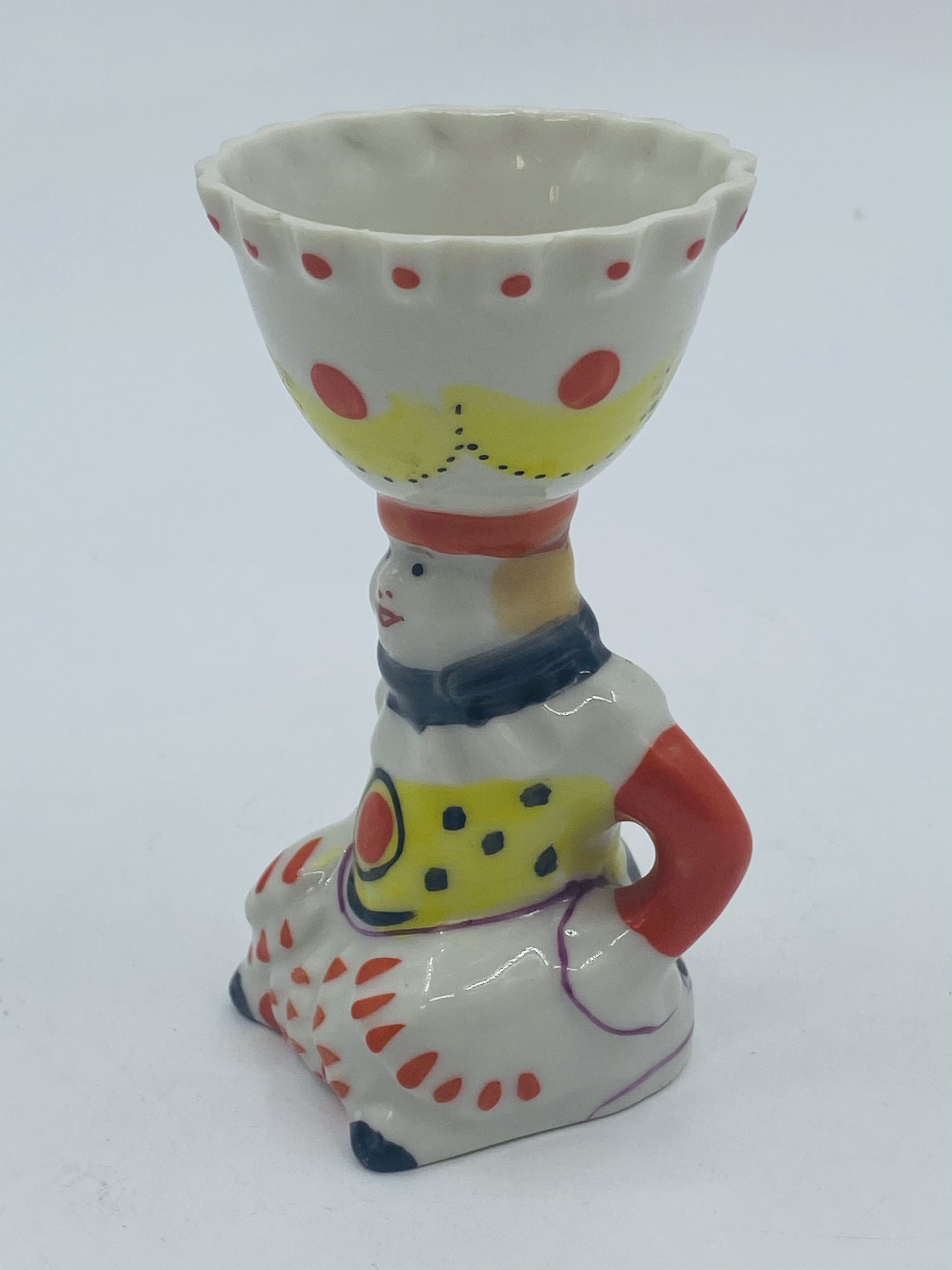 Подставка для яйца (пашотница) из столового набора "Клоунада". СССР, Барановский фарфоровый завод, автор С. Орлов, 1950-1960-е гг. Фарфор, роспись.Высота - 9 см.