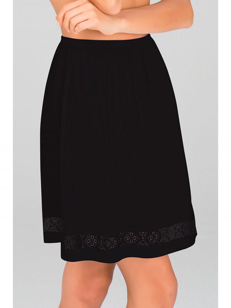 Юбка выполнена из высококачественного 100% микрополиамида.Благодаря своей шелковистой микротканой структуре изделие не электризуется и подходит для использования как летом, так и зимой. Юбка идеально облегает тело за счет резинки на талии. Кружевная дета