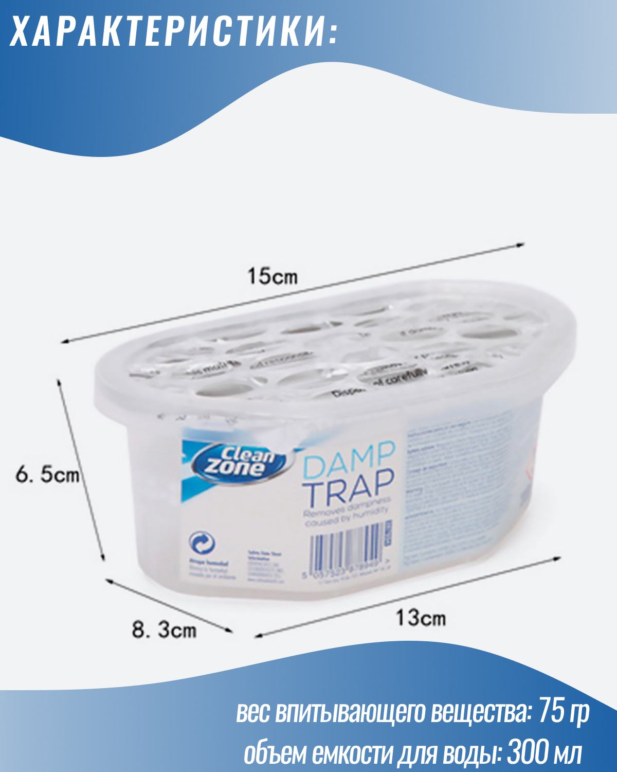 Поглотитель влаги / осушитель воздуха / влагопоглотитель / нейтрализатор запаха в помещении Clean Zone 300 млПроблем с повышенной влажностью больше нет!Сырость в помещении создает ряд проблем, таких как плесень на стенах, потолке и окнах, влажная одежда в